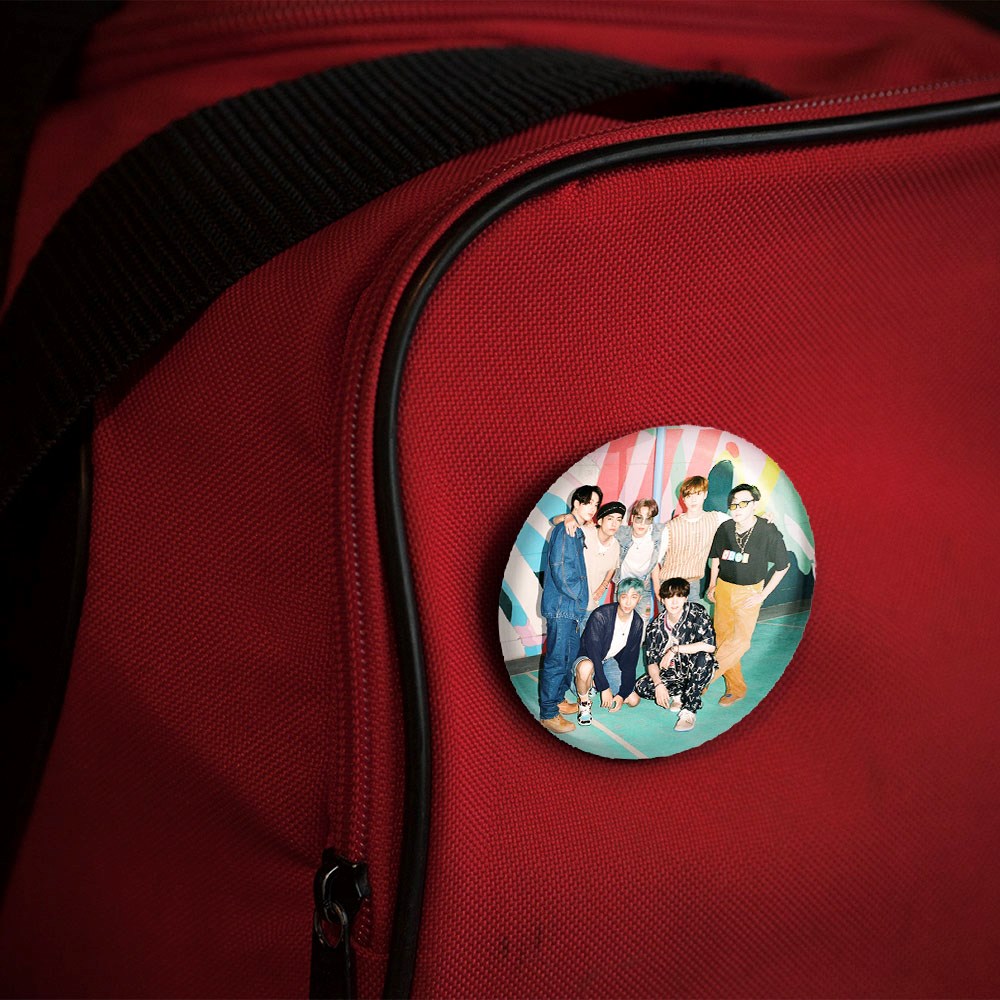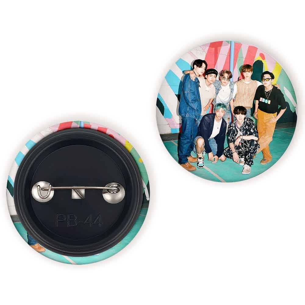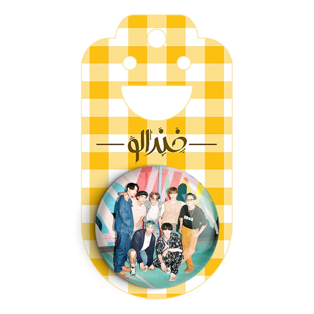 پیکسل 44 میلی متری گروه بی تی اس BTS خندالو با روکش سلفون حرارتی مات مخملی ضدخش و قطعه پشتی رنگی تولید شده است.پلاستیکی پشت پیکسل با سوزن یک تکه ثابت و بدون لغزش و جا به جایی، ایستایی بسیار بهتری نسبت به پشتی فلزی پیکسل دارند که این مهم در تولید این محصول نیز رعایت شده است.