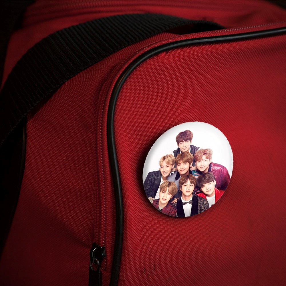 پیکسل 44 میلی متری گروه بی تی اس BTS خندالو با روکش سلفون حرارتی مات مخملی ضدخش و قطعه پشتی رنگی تولید شده است.پلاستیکی پشت پیکسل با سوزن یک تکه ثابت و بدون لغزش و جا به جایی، ایستایی بسیار بهتری نسبت به پشتی فلزی پیکسل دارند که این مهم در تولید این محصول نیز رعایت شده است.