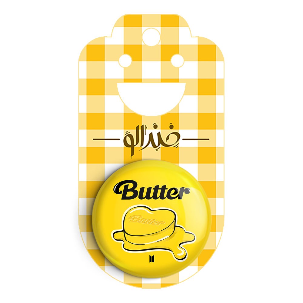 پیکسل 44 میلی متری گروه بی تی اس BTS خندالو با روکش سلفون حرارتی مات مخملی ضدخش و قطعه پشتی رنگی تولید شده است.پلاستیکی پشت پیکسل با سوزن یک تکه ثابت و بدون لغزش و جا به جایی، ایستایی بسیار بهتری نسبت به پشتی فلزی پیکسل دارند که این مهم در تولید این محصول نیز رعایت شده است.
