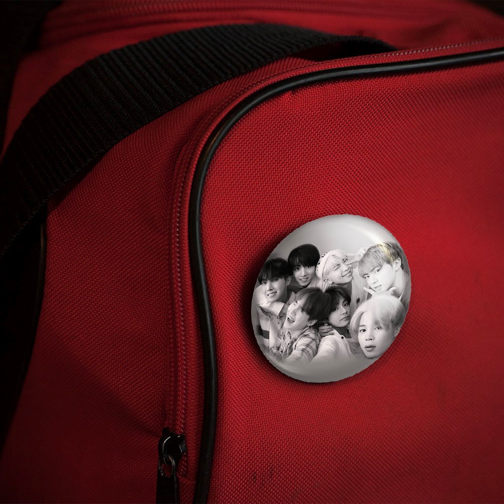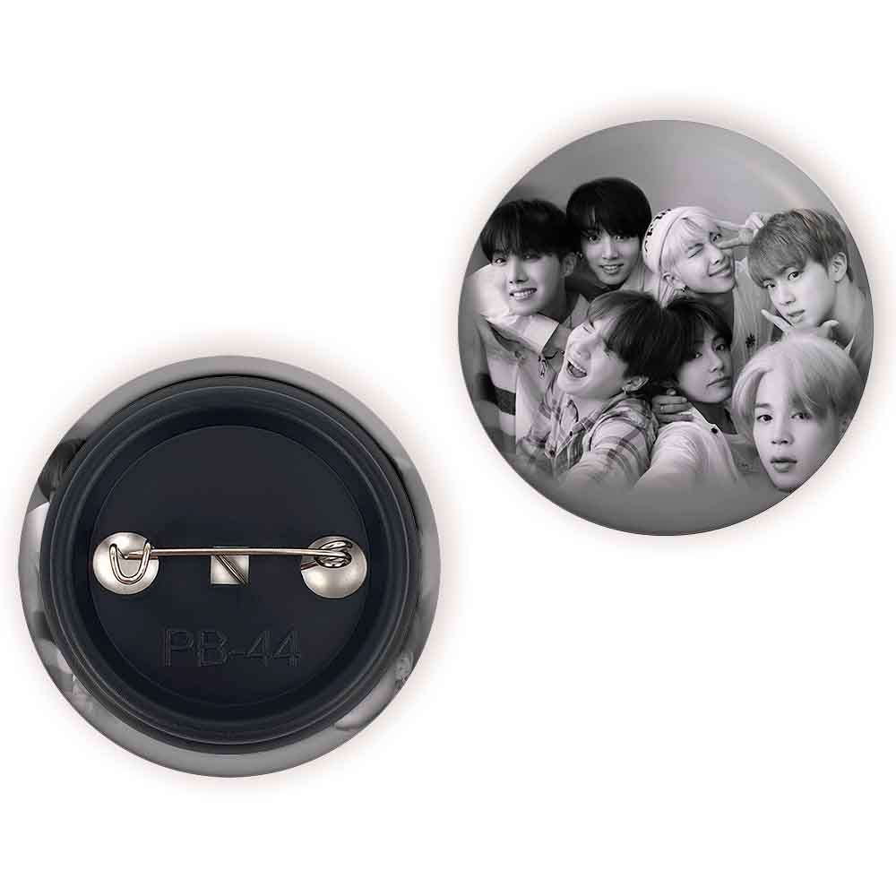 پیکسل 44 میلی متری گروه بی تی اس BTS خندالو با روکش سلفون حرارتی مات مخملی ضدخش و قطعه پشتی رنگی تولید شده است.پلاستیکی پشت پیکسل با سوزن یک تکه ثابت و بدون لغزش و جا به جایی، ایستایی بسیار بهتری نسبت به پشتی فلزی پیکسل دارند که این مهم در تولید این محصول نیز رعایت شده است.