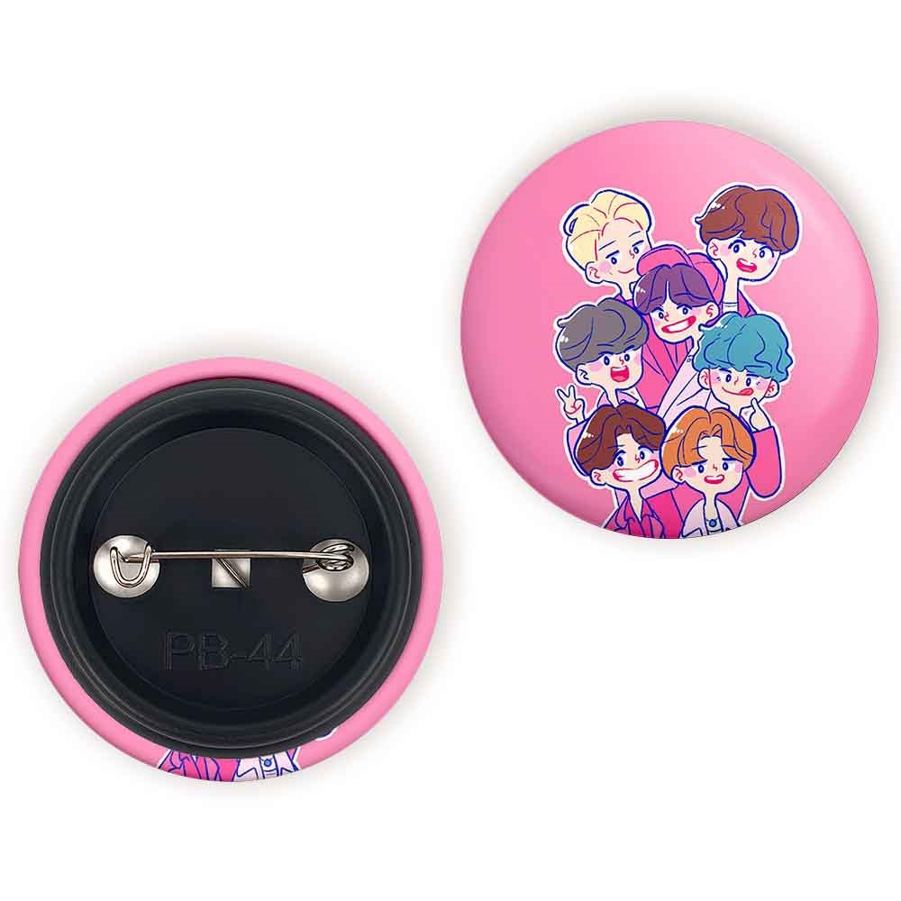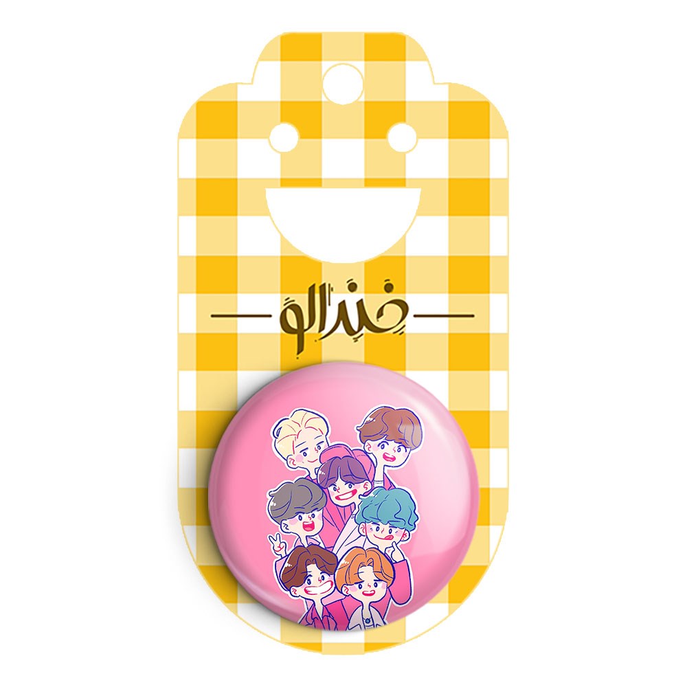پیکسل 44 میلی متری گروه بی تی اس BTS خندالو با روکش سلفون حرارتی مات مخملی ضدخش و قطعه پشتی رنگی تولید شده است.پلاستیکی پشت پیکسل با سوزن یک تکه ثابت و بدون لغزش و جا به جایی، ایستایی بسیار بهتری نسبت به پشتی فلزی پیکسل دارند که این مهم در تولید این محصول نیز رعایت شده است.