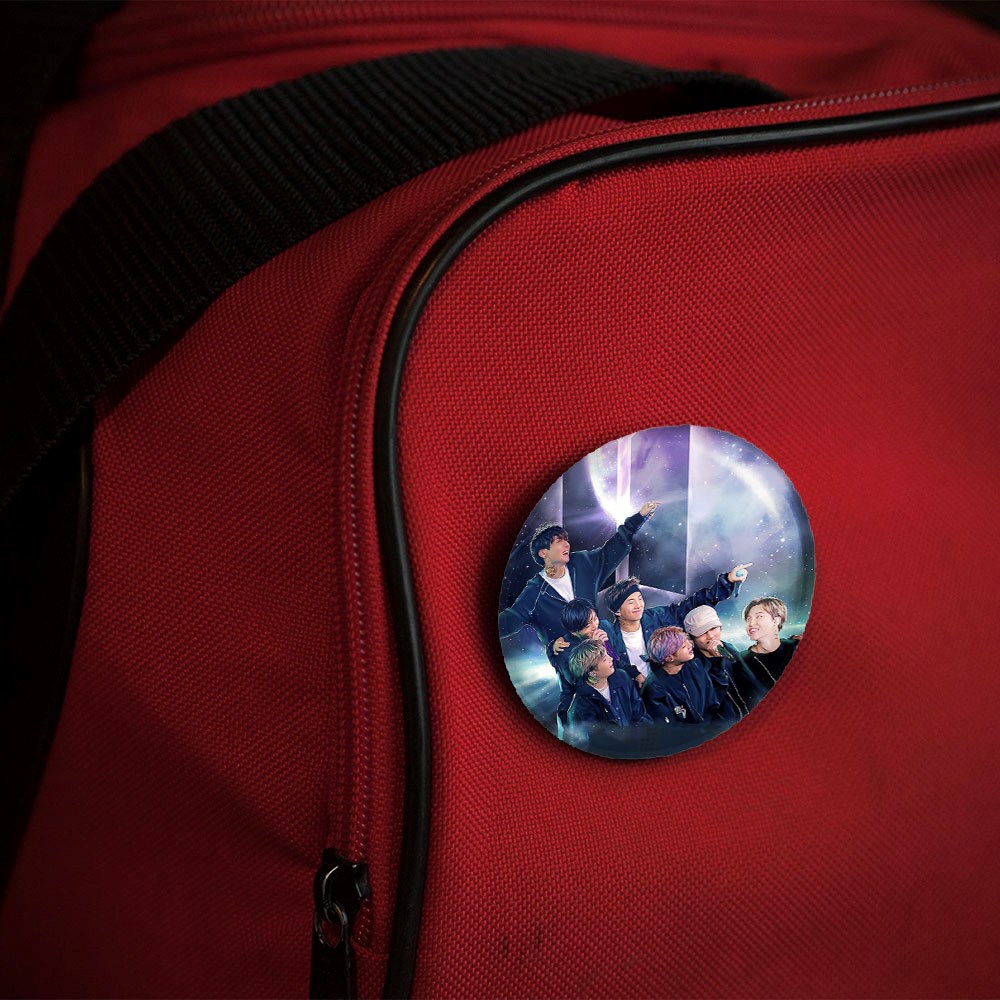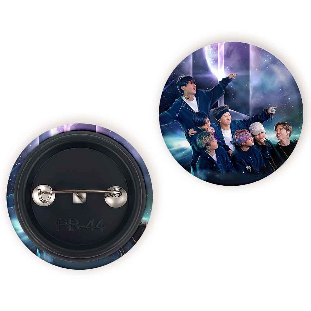 پیکسل 44 میلی متری گروه بی تی اس BTS خندالو با روکش سلفون حرارتی مات مخملی ضدخش و قطعه پشتی رنگی تولید شده است.پلاستیکی پشت پیکسل با سوزن یک تکه ثابت و بدون لغزش و جا به جایی، ایستایی بسیار بهتری نسبت به پشتی فلزی پیکسل دارند که این مهم در تولید این محصول نیز رعایت شده است.