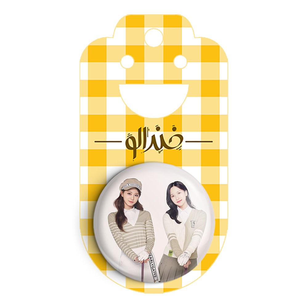 پیکسل 44 میلی متری گروه توایس TWICE خندالو با روکش سلفون حرارتی مات مخملی ضدخش و قطعه پشتی رنگی تولید شده است.پلاستیکی پشت پیکسل با سوزن یک تکه ثابت و بدون لغزش و جا به جایی، ایستایی بسیار بهتری نسبت به پشتی فلزی پیکسل دارند که این مهم در تولید این محصول نیز رعایت شده است.