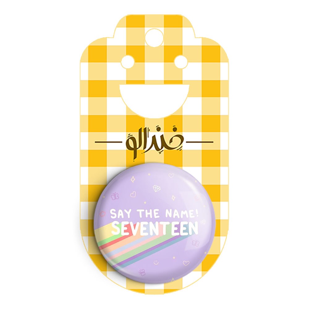 پیکسل 44 میلی متری گروه سونتین Seventeen خندالو با روکش سلفون حرارتی مات مخملی ضدخش و قطعه پشتی رنگی تولید شده است.پلاستیکی پشت پیکسل با سوزن یک تکه ثابت و بدون لغزش و جا به جایی، ایستایی بسیار بهتری نسبت به پشتی فلزی پیکسل دارند که این مهم در تولید این محصول نیز رعایت شده است.