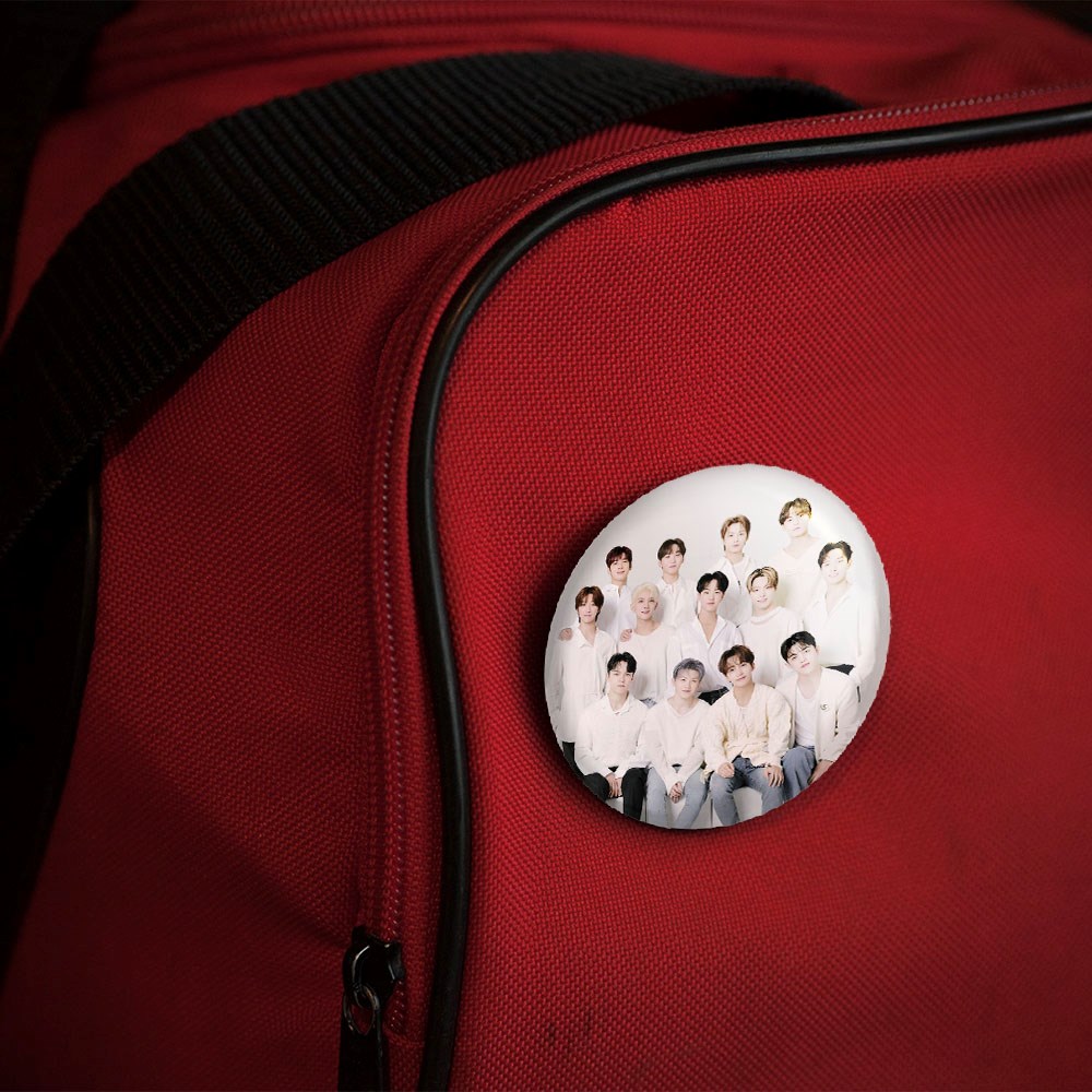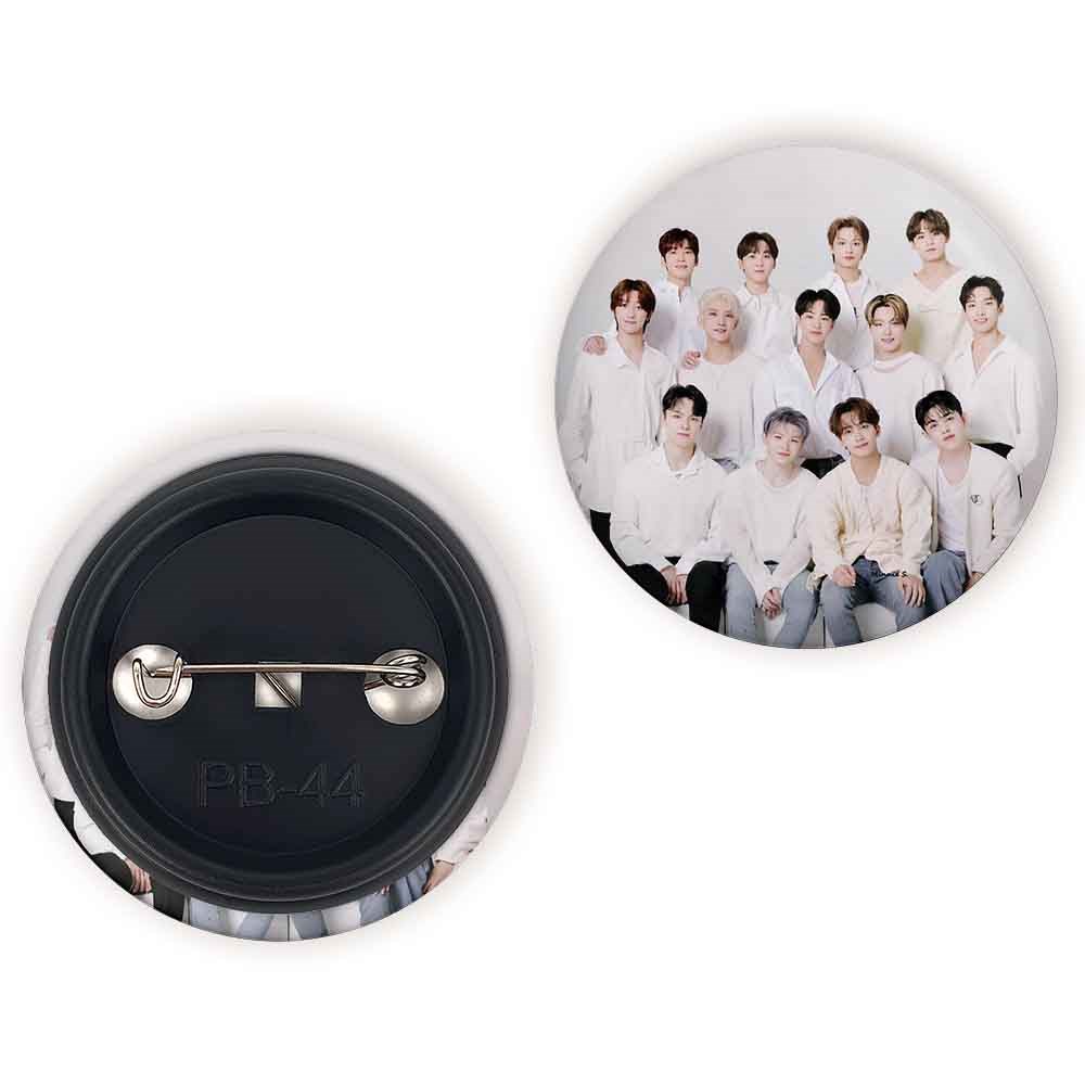 پیکسل 44 میلی متری گروه سونتین Seventeen خندالو با روکش سلفون حرارتی مات مخملی ضدخش و قطعه پشتی رنگی تولید شده است.پلاستیکی پشت پیکسل با سوزن یک تکه ثابت و بدون لغزش و جا به جایی، ایستایی بسیار بهتری نسبت به پشتی فلزی پیکسل دارند که این مهم در تولید این محصول نیز رعایت شده است.