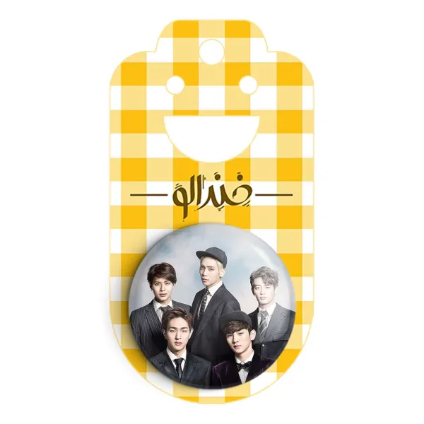 پیکسل 44 میلی متری گروه شاینی Shinee خندالو با روکش سلفون حرارتی مات مخملی ضدخش و قطعه پشتی رنگی تولید شده است.پلاستیکی پشت پیکسل با سوزن یک تکه ثابت و بدون لغزش و جا به جایی، ایستایی بسیار بهتری نسبت به پشتی فلزی پیکسل دارند که این مهم در تولید این محصول نیز رعایت شده است.