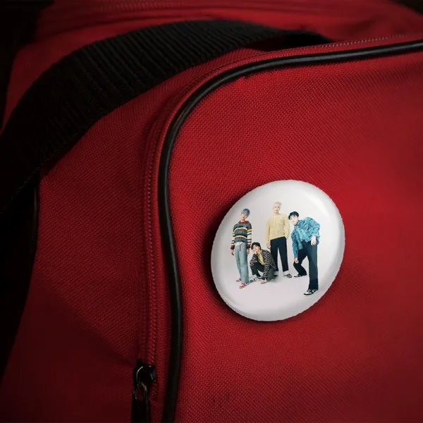 پیکسل 44 میلی متری گروه شاینی Shinee خندالو با روکش سلفون حرارتی مات مخملی ضدخش و قطعه پشتی رنگی تولید شده است.پلاستیکی پشت پیکسل با سوزن یک تکه ثابت و بدون لغزش و جا به جایی، ایستایی بسیار بهتری نسبت به پشتی فلزی پیکسل دارند که این مهم در تولید این محصول نیز رعایت شده است.