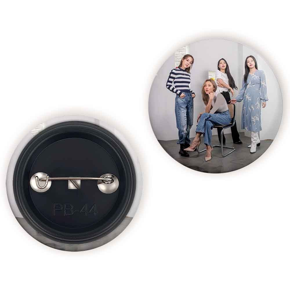 پیکسل 44 میلی متری گروه مامامو Mamamoo خندالو با روکش سلفون حرارتی مات مخملی ضدخش و قطعه پشتی رنگی تولید شده است.پلاستیکی پشت پیکسل با سوزن یک تکه ثابت و بدون لغزش و جا به جایی، ایستایی بسیار بهتری نسبت به پشتی فلزی پیکسل دارند که این مهم در تولید این محصول نیز رعایت شده است.