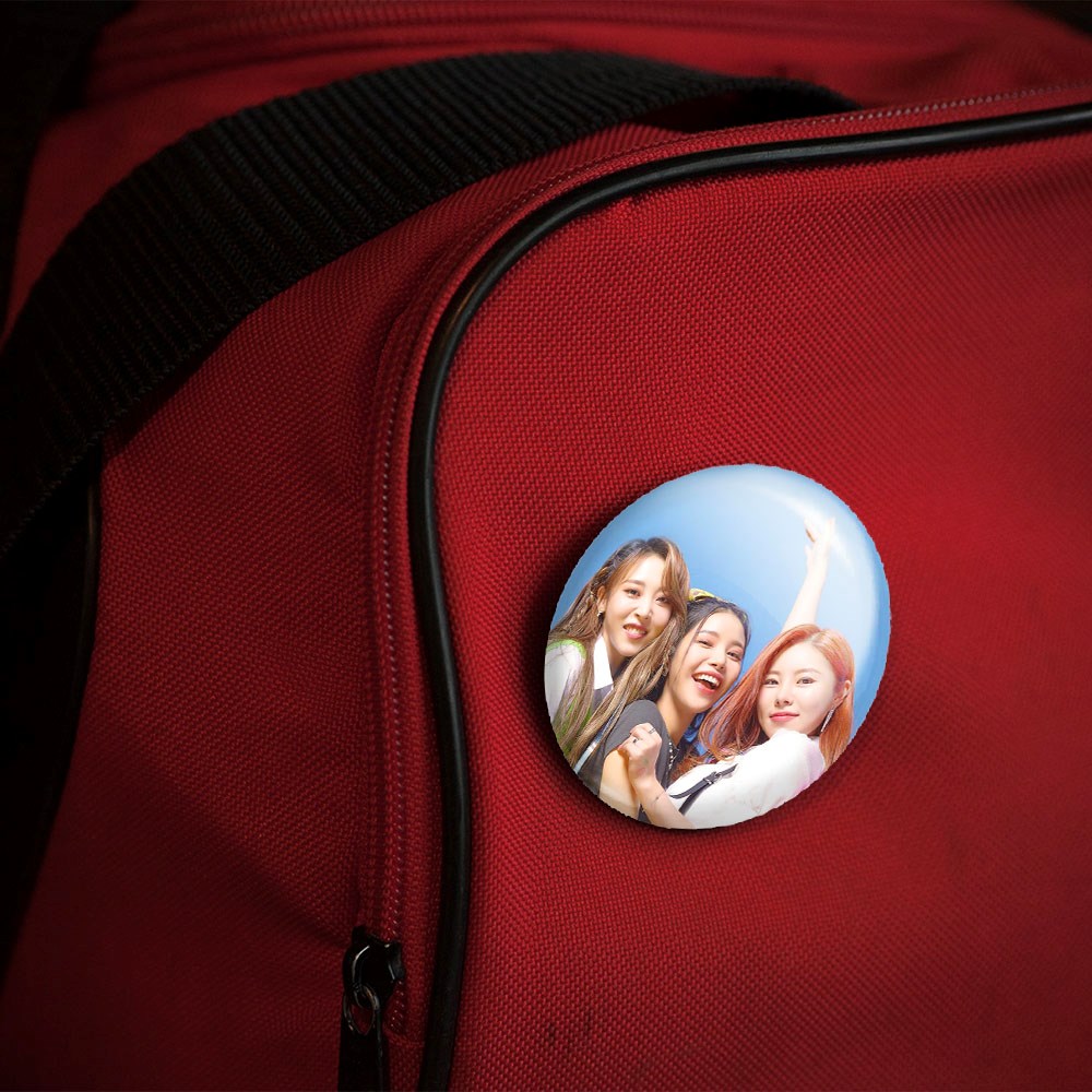 پیکسل 44 میلی متری گروه مامامو Mamamoo خندالو با روکش سلفون حرارتی مات مخملی ضدخش و قطعه پشتی رنگی تولید شده است.پلاستیکی پشت پیکسل با سوزن یک تکه ثابت و بدون لغزش و جا به جایی، ایستایی بسیار بهتری نسبت به پشتی فلزی پیکسل دارند که این مهم در تولید این محصول نیز رعایت شده است.