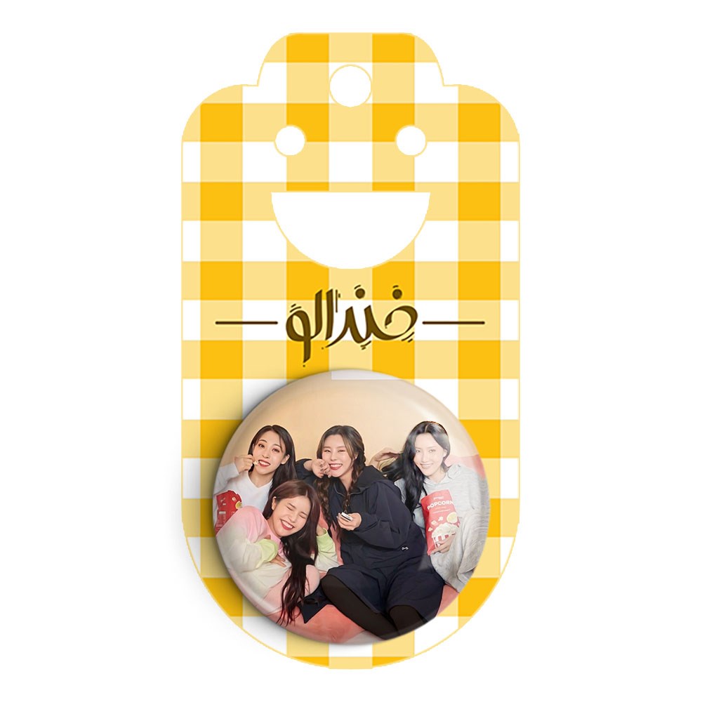 پیکسل 44 میلی متری گروه مامامو Mamamoo خندالو با روکش سلفون حرارتی مات مخملی ضدخش و قطعه پشتی رنگی تولید شده است.پلاستیکی پشت پیکسل با سوزن یک تکه ثابت و بدون لغزش و جا به جایی، ایستایی بسیار بهتری نسبت به پشتی فلزی پیکسل دارند که این مهم در تولید این محصول نیز رعایت شده است.