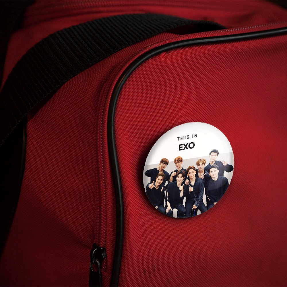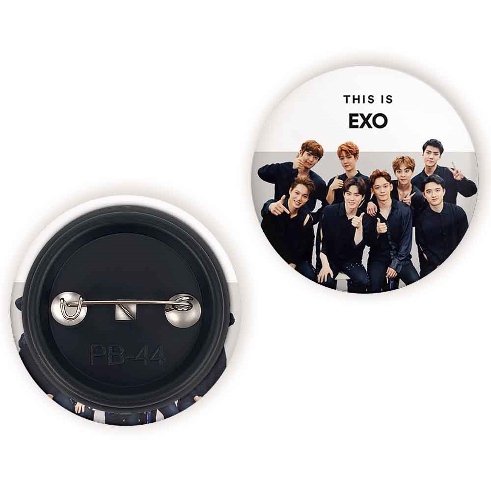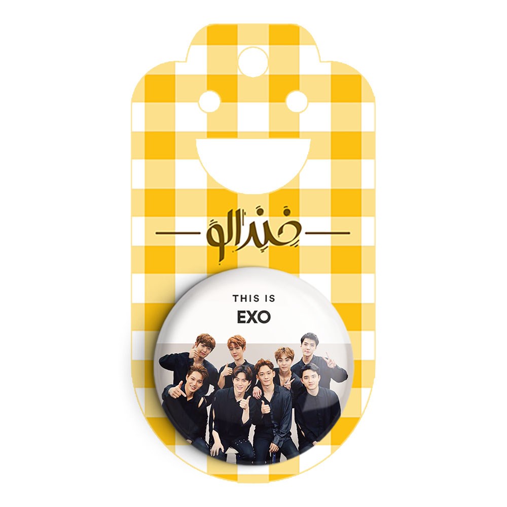 پیکسل 44 میلی متری گروه موسیقی اکسو EXO خندالو با روکش سلفون حرارتی مات مخملی ضدخش و قطعه پشتی رنگی تولید شده است.پلاستیکی پشت پیکسل با سوزن یک تکه ثابت و بدون لغزش و جا به جایی، ایستایی بسیار بهتری نسبت به پشتی فلزی پیکسل دارند که این مهم در تولید این محصول نیز رعایت شده است.