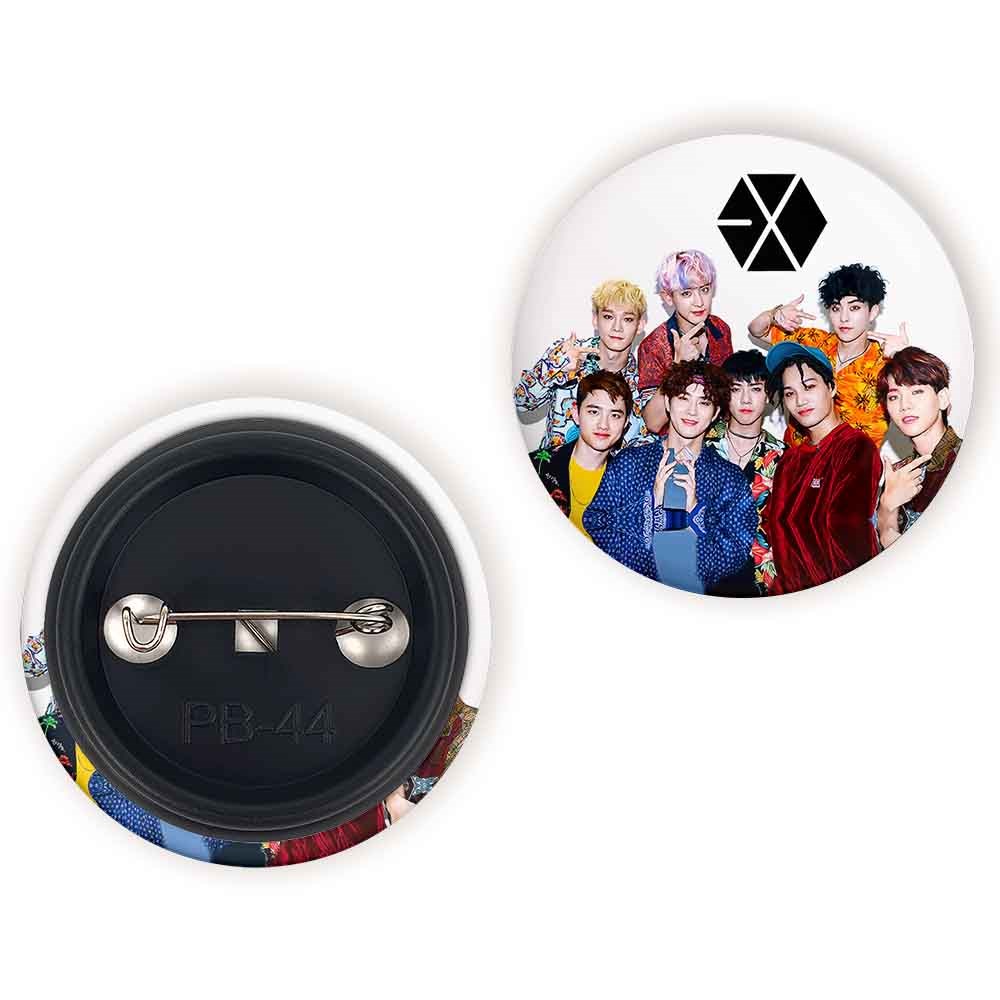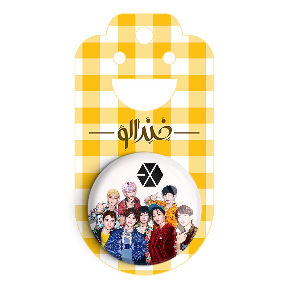 پیکسل 44 میلی متری گروه موسیقی اکسو EXO خندالو با روکش سلفون حرارتی مات مخملی ضدخش و قطعه پشتی رنگی تولید شده است.پلاستیکی پشت پیکسل با سوزن یک تکه ثابت و بدون لغزش و جا به جایی، ایستایی بسیار بهتری نسبت به پشتی فلزی پیکسل دارند که این مهم در تولید این محصول نیز رعایت شده است.