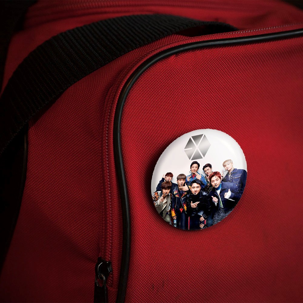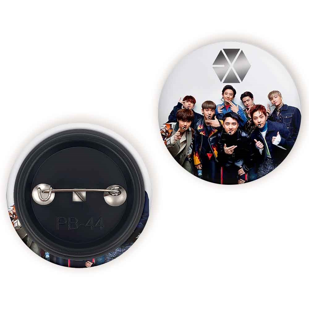 پیکسل 44 میلی متری گروه موسیقی اکسو EXO خندالو با روکش سلفون حرارتی مات مخملی ضدخش و قطعه پشتی رنگی تولید شده است.پلاستیکی پشت پیکسل با سوزن یک تکه ثابت و بدون لغزش و جا به جایی، ایستایی بسیار بهتری نسبت به پشتی فلزی پیکسل دارند که این مهم در تولید این محصول نیز رعایت شده است.