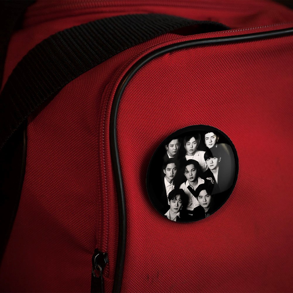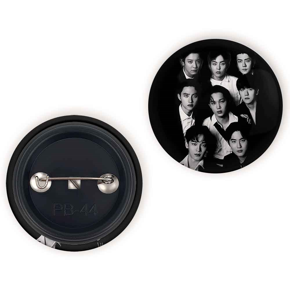 پیکسل 44 میلی متری گروه موسیقی اکسو EXO خندالو با روکش سلفون حرارتی مات مخملی ضدخش و قطعه پشتی رنگی تولید شده است.پلاستیکی پشت پیکسل با سوزن یک تکه ثابت و بدون لغزش و جا به جایی، ایستایی بسیار بهتری نسبت به پشتی فلزی پیکسل دارند که این مهم در تولید این محصول نیز رعایت شده است.
