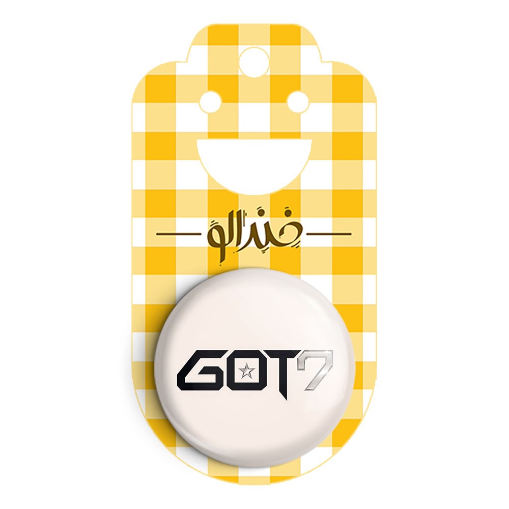 پیکسل 44 میلی متری گروه گات سون GOT7 خندالو با روکش سلفون حرارتی مات مخملی ضدخش و قطعه پشتی رنگی تولید شده است.پلاستیکی پشت پیکسل با سوزن یک تکه ثابت و بدون لغزش و جا به جایی، ایستایی بسیار بهتری نسبت به پشتی فلزی پیکسل دارند که این مهم در تولید این محصول نیز رعایت شده است.