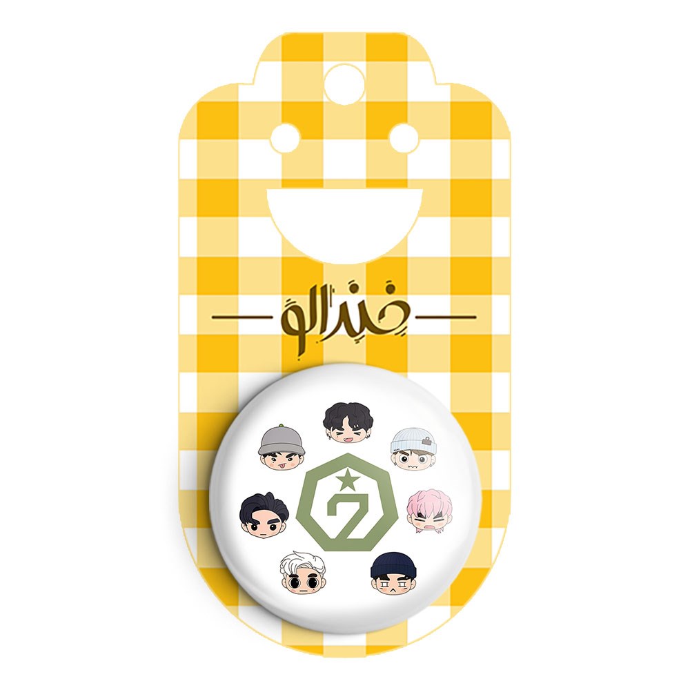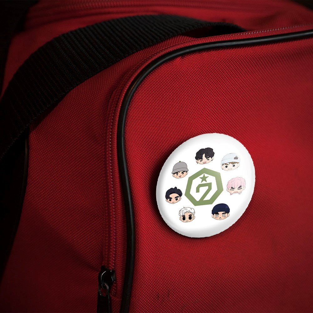 پیکسل 44 میلی متری گروه گات سون GOT7 خندالو با روکش سلفون حرارتی مات مخملی ضدخش و قطعه پشتی رنگی تولید شده است.پلاستیکی پشت پیکسل با سوزن یک تکه ثابت و بدون لغزش و جا به جایی، ایستایی بسیار بهتری نسبت به پشتی فلزی پیکسل دارند که این مهم در تولید این محصول نیز رعایت شده است.