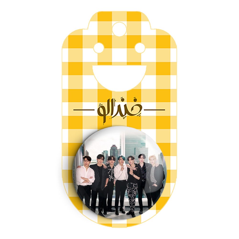 پیکسل 44 میلی متری گروه گات سون GOT7 خندالو با روکش سلفون حرارتی مات مخملی ضدخش و قطعه پشتی رنگی تولید شده است.پلاستیکی پشت پیکسل با سوزن یک تکه ثابت و بدون لغزش و جا به جایی، ایستایی بسیار بهتری نسبت به پشتی فلزی پیکسل دارند که این مهم در تولید این محصول نیز رعایت شده است.