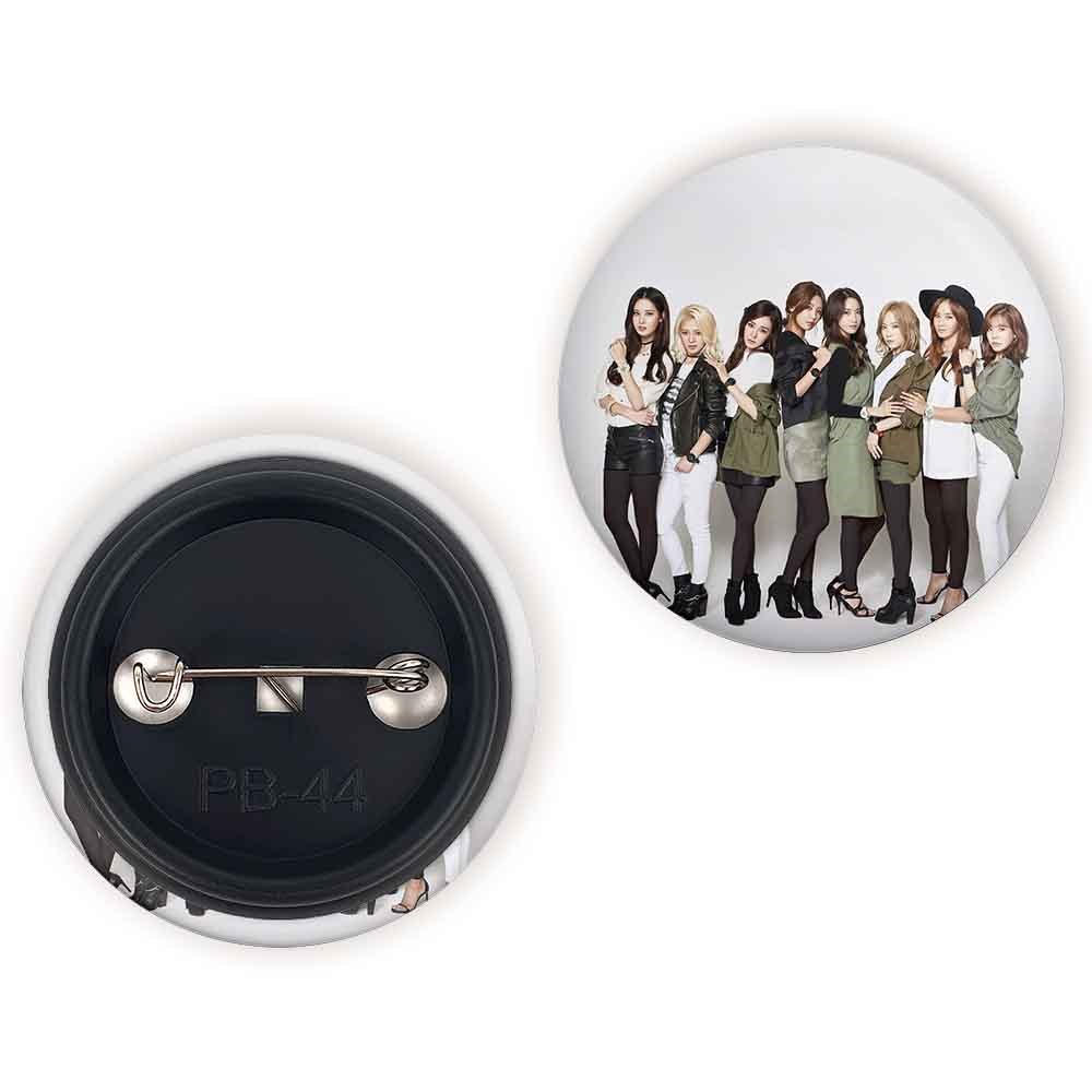 پیکسل 44 میلی متری گروه گرلز جنریشن Girls Generation خندالو با روکش سلفون حرارتی مات مخملی ضدخش و قطعه پشتی رنگی تولید شده است.پلاستیکی پشت پیکسل با سوزن یک تکه ثابت و بدون لغزش و جا به جایی، ایستایی بسیار بهتری نسبت به پشتی فلزی پیکسل دارند که این مهم در تولید این محصول نیز رعایت شده است.