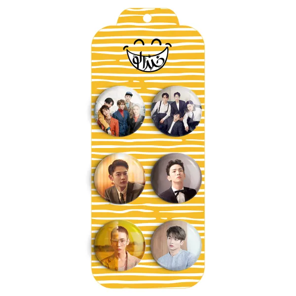 مجموعه 6 عددی پیکسل خندالو طرح گروه Shinee با روکش سلفون حرارتی براق ضدخش و قطعه پشتی رنگی تولید شده است. قطعات پشتی از میان 6 رنگ سفید، مشکی، صورتی، زرد، آبی و قرمز که با توجه به نوع و رنگبندی طرح روی پیکسل انتخاب شده اند تولید می شود و در هر بسته بندی مطابق عکس محصول می باشد.