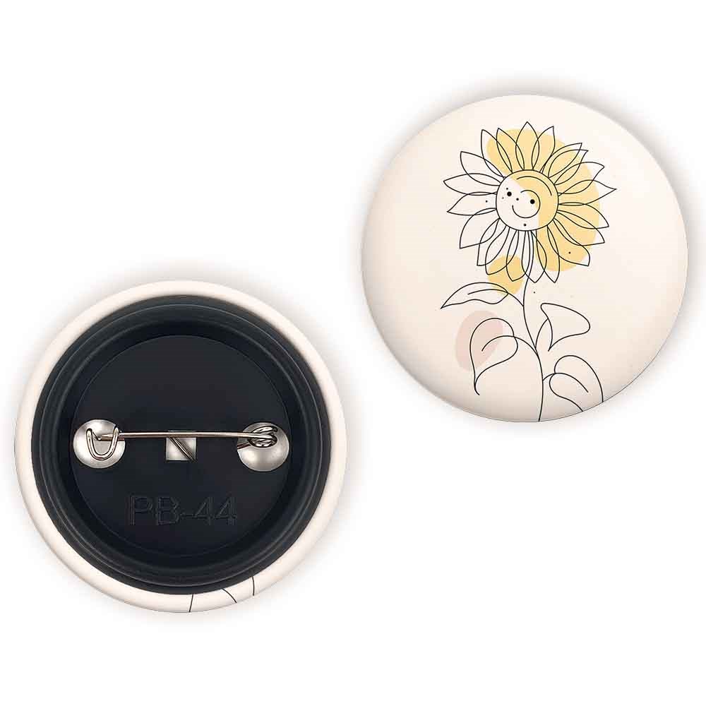 پیکسل 44 میلی متری گل آفتابگردان خندالو با روکش سلفون حرارتی مات مخملی ضدخش و قطعه پشتی رنگی تولید شده است.پلاستیکی پشت پیکسل با سوزن یک تکه ثابت و بدون لغزش و جا به جایی، ایستایی بسیار بهتری نسبت به پشتی فلزی پیکسل دارند که این مهم در تولید این محصول نیز رعایت شده است.