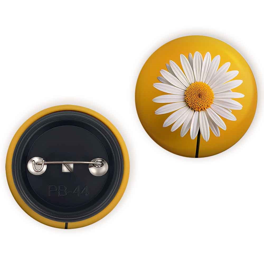پیکسل 44 میلی متری گل بابونه خندالو با روکش سلفون حرارتی مات مخملی ضدخش و قطعه پشتی رنگی تولید شده است.پلاستیکی پشت پیکسل با سوزن یک تکه ثابت و بدون لغزش و جا به جایی، ایستایی بسیار بهتری نسبت به پشتی فلزی پیکسل دارند که این مهم در تولید این محصول نیز رعایت شده است.