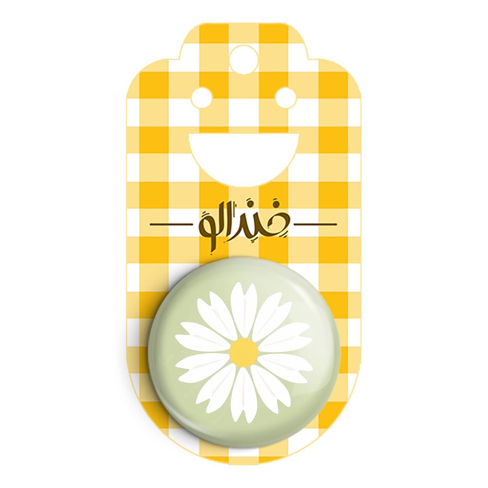 پیکسل 44 میلی متری گل بابونه خندالو با روکش سلفون حرارتی مات مخملی ضدخش و قطعه پشتی رنگی تولید شده است.پلاستیکی پشت پیکسل با سوزن یک تکه ثابت و بدون لغزش و جا به جایی، ایستایی بسیار بهتری نسبت به پشتی فلزی پیکسل دارند که این مهم در تولید این محصول نیز رعایت شده است.