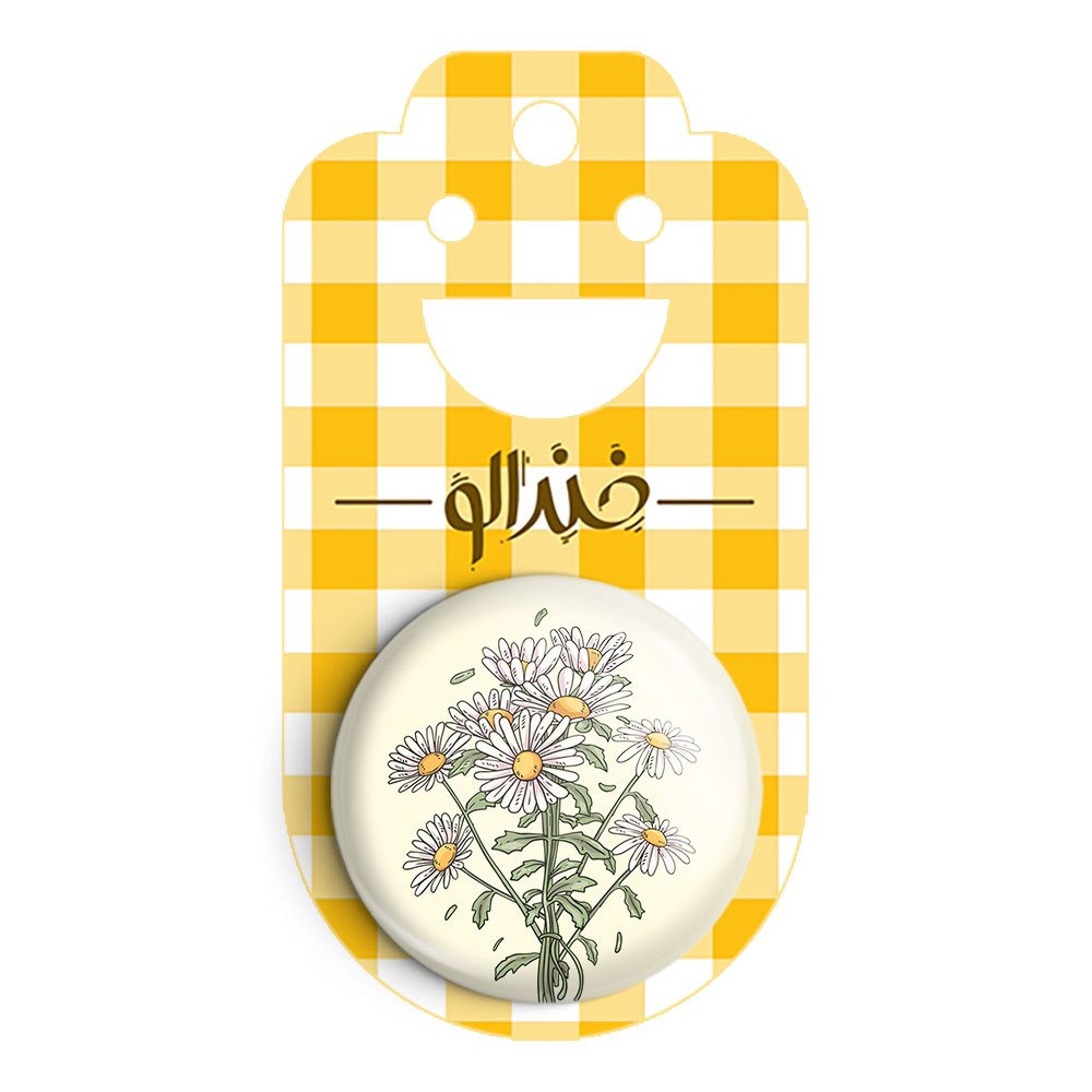 پیکسل 44 میلی متری گل بابونه خندالو با روکش سلفون حرارتی مات مخملی ضدخش و قطعه پشتی رنگی تولید شده است.پلاستیکی پشت پیکسل با سوزن یک تکه ثابت و بدون لغزش و جا به جایی، ایستایی بسیار بهتری نسبت به پشتی فلزی پیکسل دارند که این مهم در تولید این محصول نیز رعایت شده است.