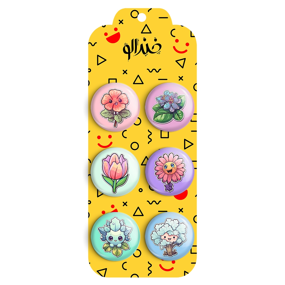 مجموعه 6 عددی پیکسل خندالو طرح گل و گیاه با روکش سلفون حرارتی براق ضدخش و قطعه پشتی رنگی تولید شده است. قطعات پشتی از میان 6 رنگ سفید، مشکی، صورتی، زرد، آبی و قرمز که با توجه به نوع و رنگبندی طرح روی پیکسل انتخاب شده اند تولید می شود و در هر بسته بندی مطابق عکس محصول می باشد.