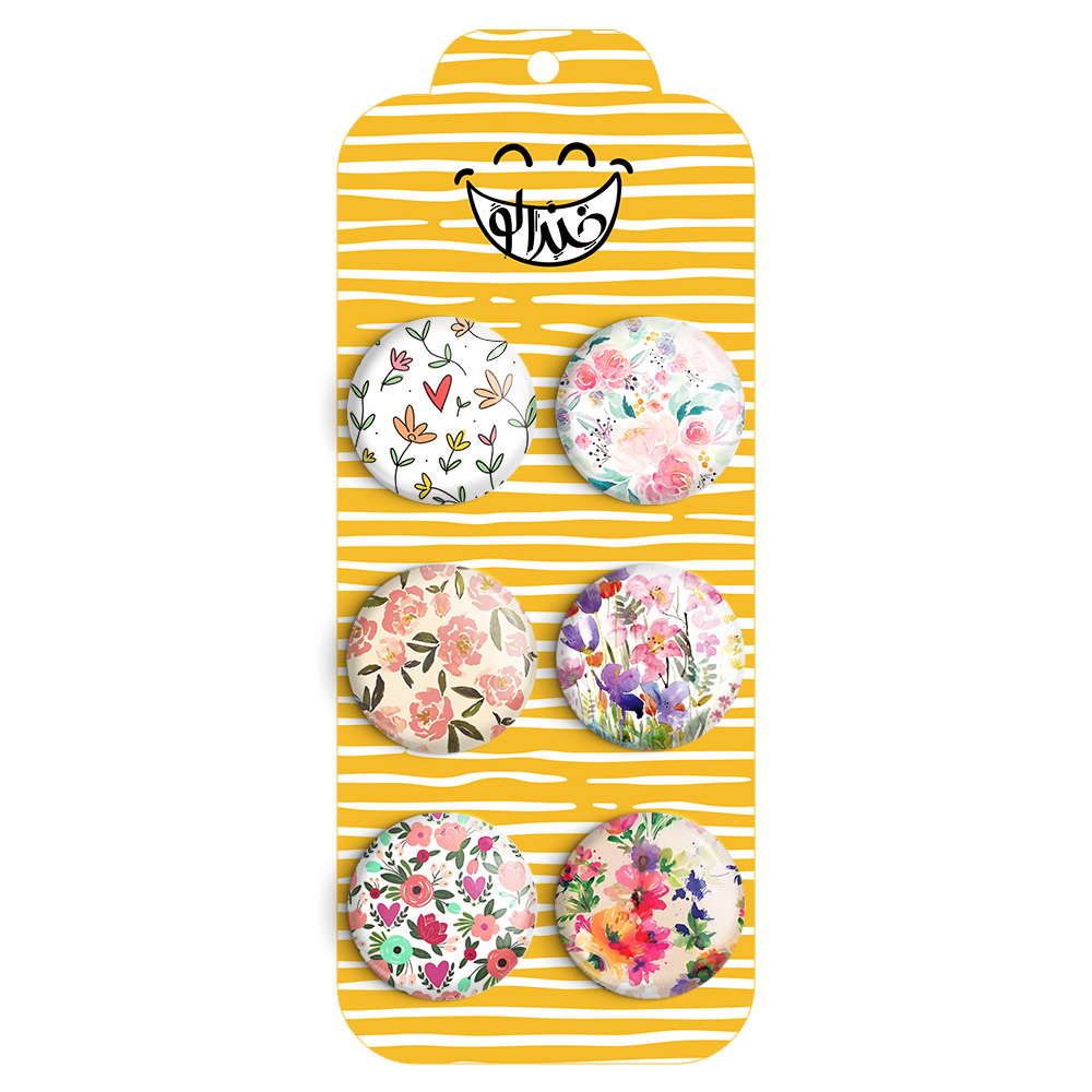 مجموعه 6 عددی پیکسل خندالو طرح گل گلی با روکش سلفون حرارتی براق ضدخش و قطعه پشتی رنگی تولید شده است. قطعات پشتی از میان 6 رنگ سفید، مشکی، صورتی، زرد، آبی و قرمز که با توجه به نوع و رنگبندی طرح روی پیکسل انتخاب شده اند تولید می شود و در هر بسته بندی مطابق عکس محصول می باشد.