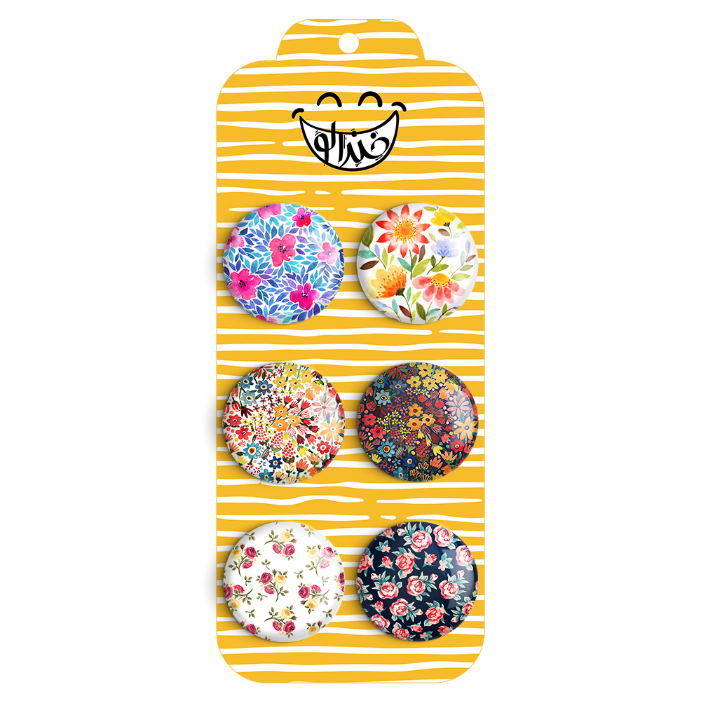 مجموعه 6 عددی پیکسل خندالو طرح گل گلی با روکش سلفون حرارتی براق ضدخش و قطعه پشتی رنگی تولید شده است. قطعات پشتی از میان 6 رنگ سفید، مشکی، صورتی، زرد، آبی و قرمز که با توجه به نوع و رنگبندی طرح روی پیکسل انتخاب شده اند تولید می شود و در هر بسته بندی مطابق عکس محصول می باشد.