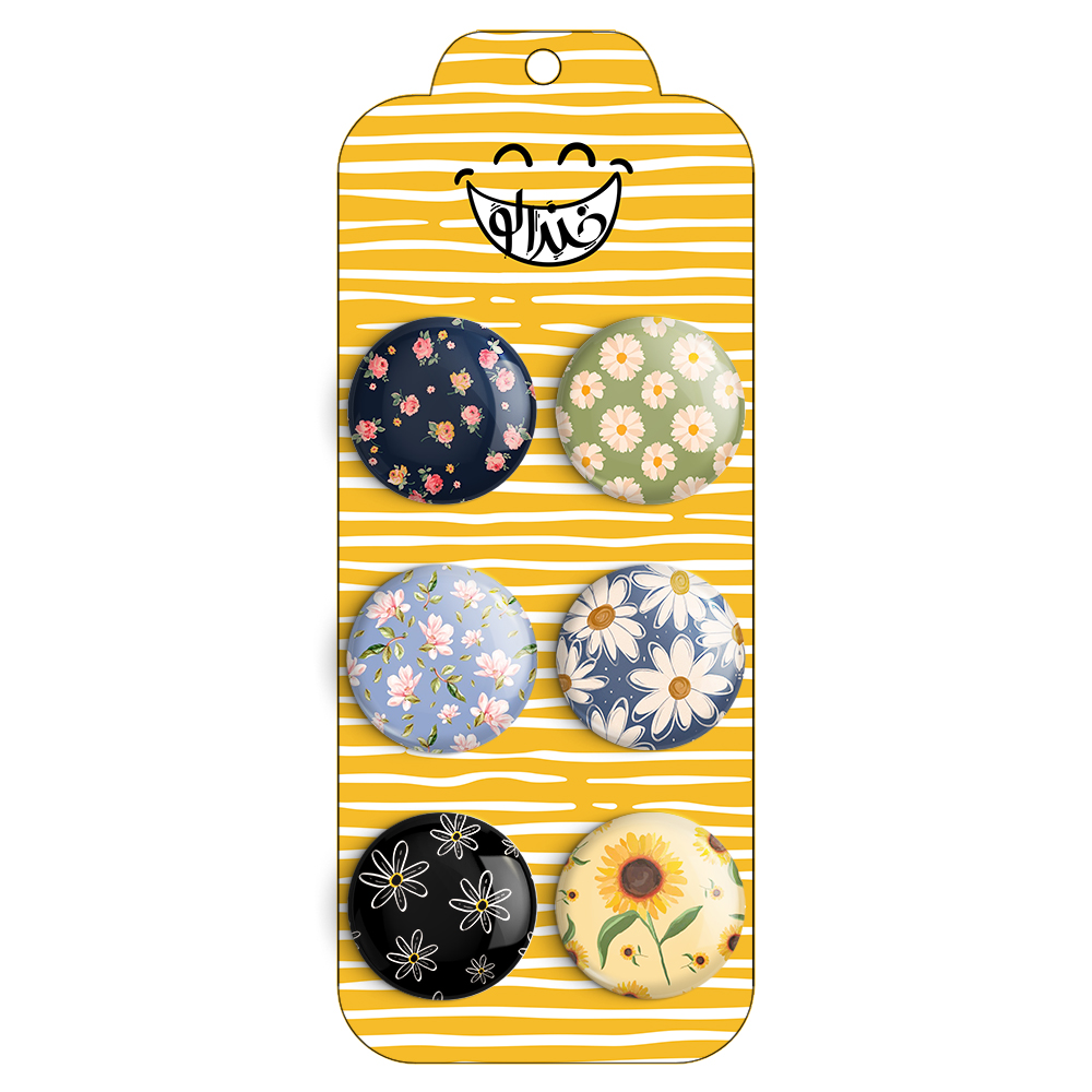 مجموعه 6 عددی پیکسل خندالو طرح گل گلی با روکش سلفون حرارتی براق ضدخش و قطعه پشتی رنگی تولید شده است. قطعات پشتی از میان 6 رنگ سفید، مشکی، صورتی، زرد، آبی و قرمز که با توجه به نوع و رنگبندی طرح روی پیکسل انتخاب شده اند تولید می شود و در هر بسته بندی مطابق عکس محصول می باشد.