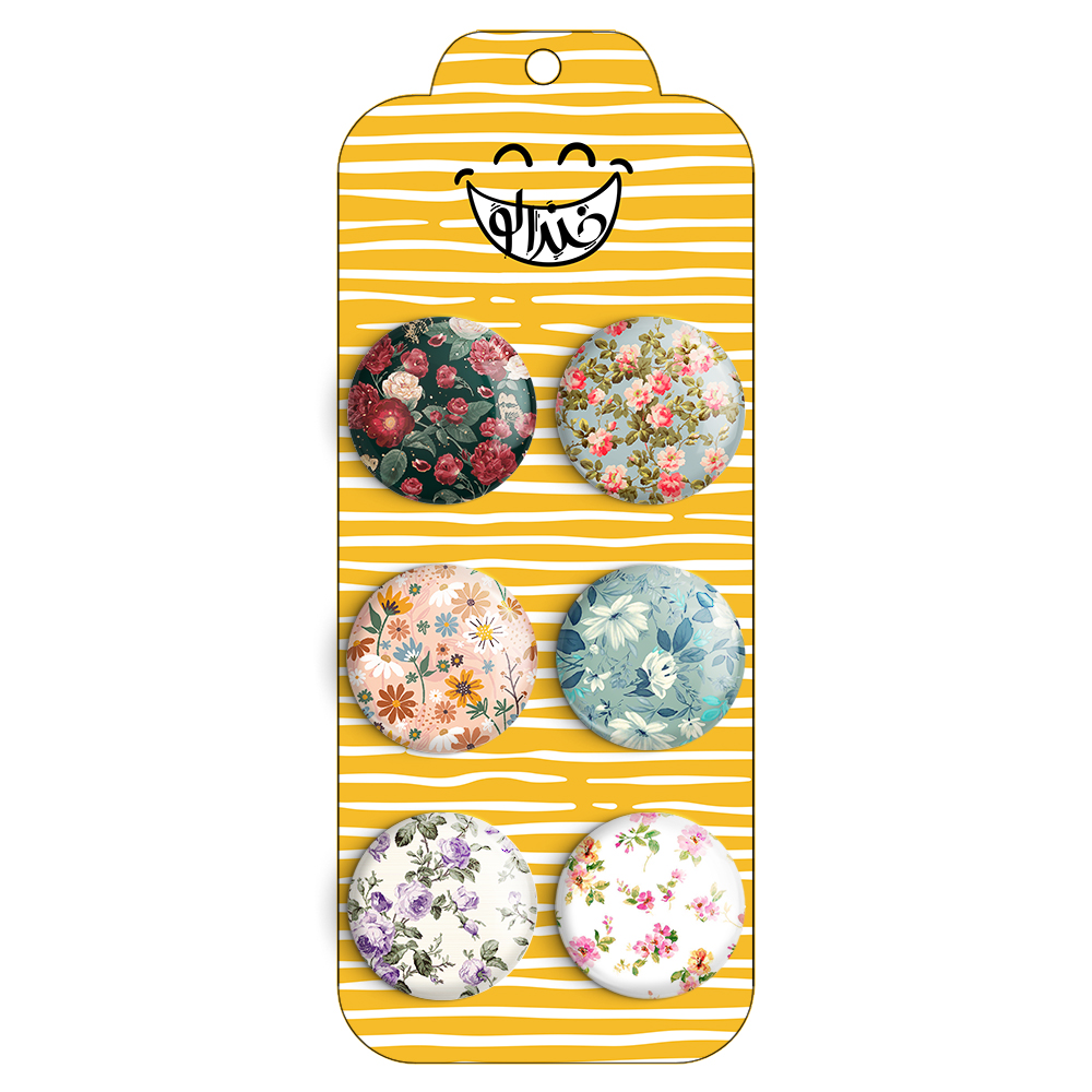مجموعه 6 عددی پیکسل خندالو طرح گل گلی با روکش سلفون حرارتی براق ضدخش و قطعه پشتی رنگی تولید شده است. قطعات پشتی از میان 6 رنگ سفید، مشکی، صورتی، زرد، آبی و قرمز که با توجه به نوع و رنگبندی طرح روی پیکسل انتخاب شده اند تولید می شود و در هر بسته بندی مطابق عکس محصول می باشد.