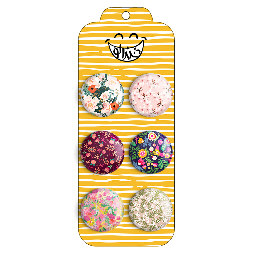 مجموعه 6 عددی پیکسل خندالو طرح گل گلی با روکش سلفون حرارتی براق ضدخش و قطعه پشتی رنگی تولید شده است. قطعات پشتی از میان 6 رنگ سفید، مشکی، صورتی، زرد، آبی و قرمز که با توجه به نوع و رنگبندی طرح روی پیکسل انتخاب شده اند تولید می شود و در هر بسته بندی مطابق عکس محصول می باشد.