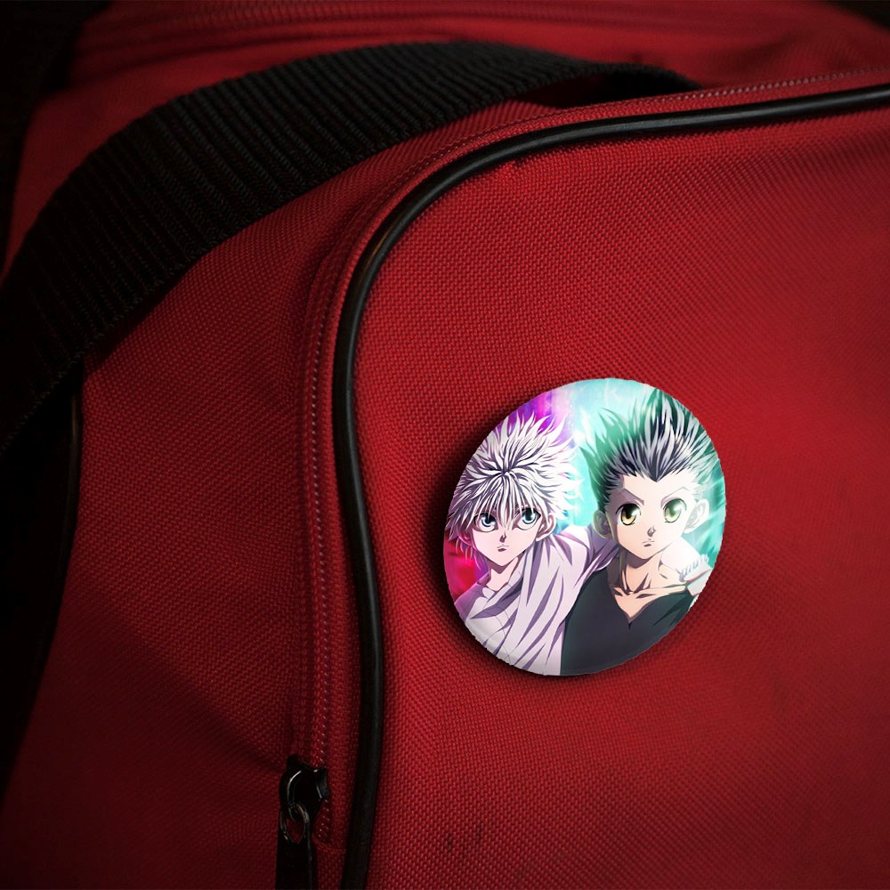 پیکسل 44 میلی متری گون و کیلوا انیمه هانتر ایکس هانتر Hunter × Hunter خندالو با روکش سلفون حرارتی مات مخملی ضدخش و قطعه پشتی رنگی تولید شده است.پلاستیکی پشت پیکسل با سوزن یک تکه ثابت و بدون لغزش و جا به جایی، ایستایی بسیار بهتری نسبت به پشتی فلزی پیکسل دارند که این مهم در تولید این محصول نیز رعایت شده است.