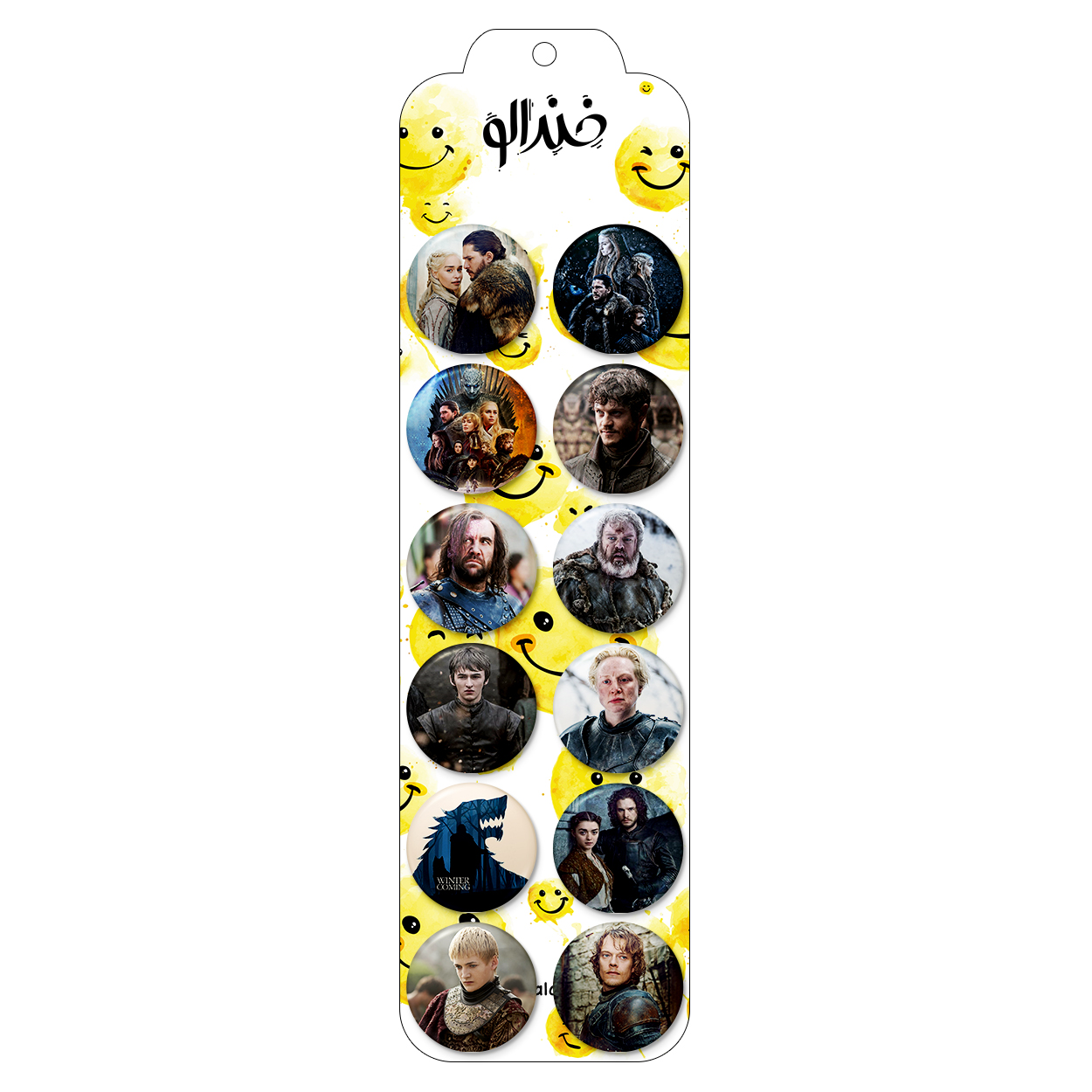 پک 12 عددی پیکسل خندالو طرح گیم اف ترونز (Game of Thrones) با روکش سلفون حرارتی براق ضدخش و قطعه پشتی رنگی تولید شده است. قطعات پشتی از میان 6 رنگ سفید، مشکی، صورتی، زرد، آبی و قرمز که با توجه به نوع و رنگبندی طرح روی پیکسل انتخاب شده اند تولید می شود و در هر بسته بندی مطابق عکس محصول می باشد. قطعات پلاستیکی پشت پیکسل با سوزن یک تکه ثابت و بدون لغزش و جا به جایی، ایستایی بسیار بهتری نسبت به پشتی فلزی پیکسل دارند که این مهم در تولید این محصول نیز رعایت شده است.