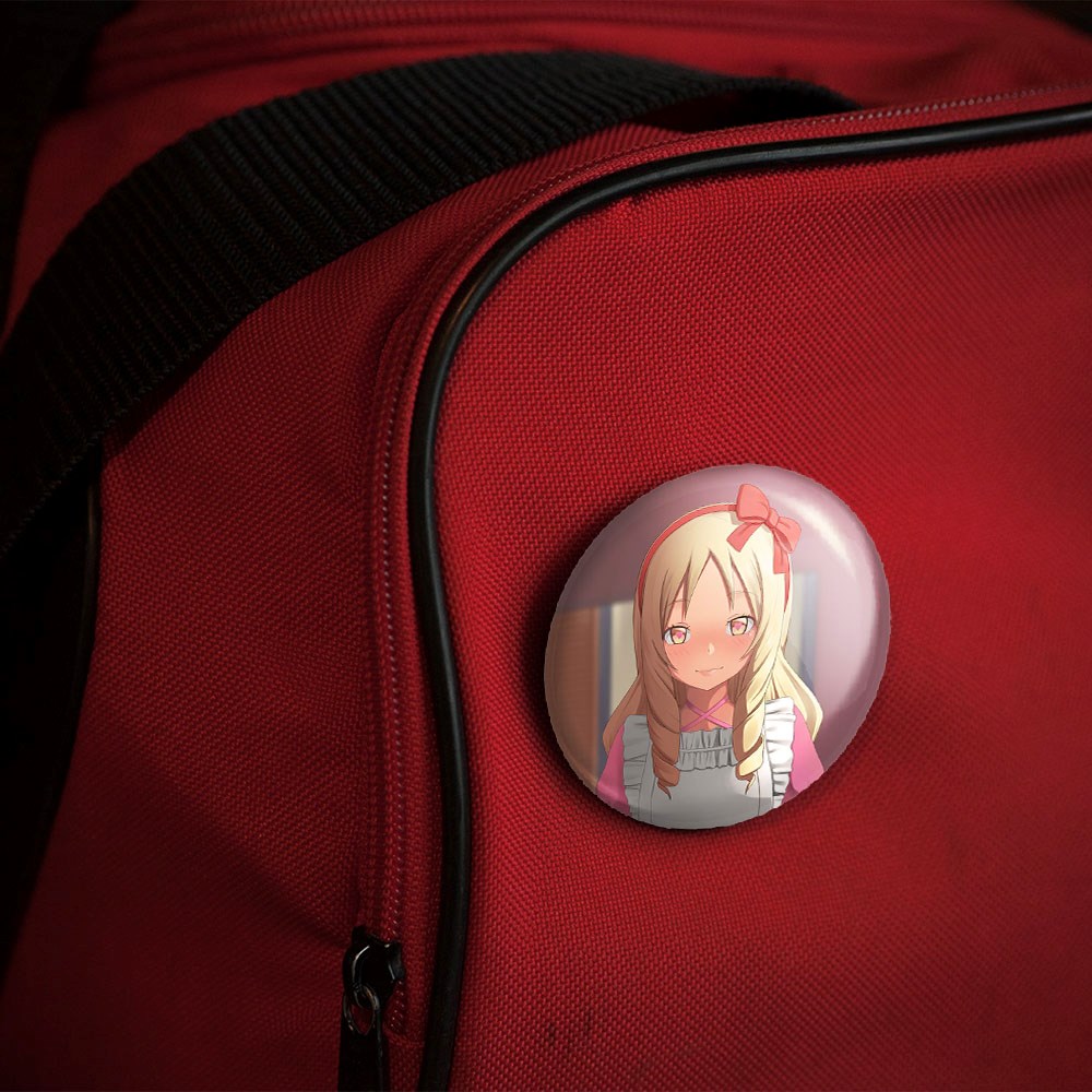 پیکسل 44 میلی متری یامادا الف انیمه ارومانگا سنسی Eromanga Sensei خندالو با روکش سلفون حرارتی مات مخملی ضدخش و قطعه پشتی رنگی تولید شده است.پلاستیکی پشت پیکسل با سوزن یک تکه ثابت و بدون لغزش و جا به جایی، ایستایی بسیار بهتری نسبت به پشتی فلزی پیکسل دارند که این مهم در تولید این محصول نیز رعایت شده است.