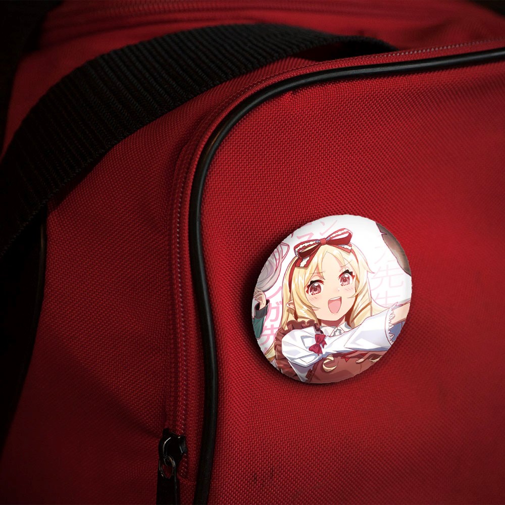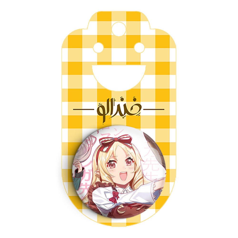 پیکسل 44 میلی متری یامادا الف انیمه ارومانگا سنسی Eromanga Sensei خندالو با روکش سلفون حرارتی مات مخملی ضدخش و قطعه پشتی رنگی تولید شده است.پلاستیکی پشت پیکسل با سوزن یک تکه ثابت و بدون لغزش و جا به جایی، ایستایی بسیار بهتری نسبت به پشتی فلزی پیکسل دارند که این مهم در تولید این محصول نیز رعایت شده است.