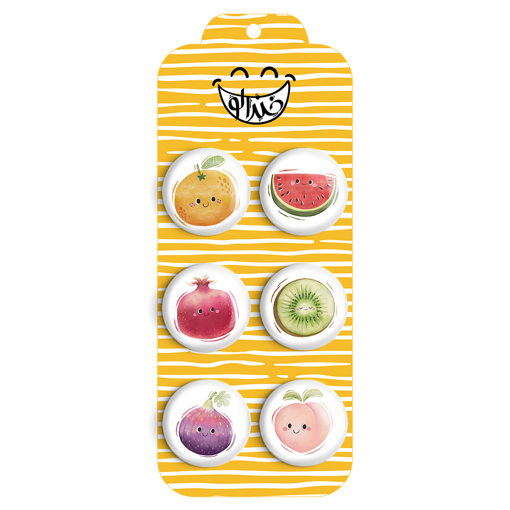 مجموعه 6 عددی پیکسل خندالو طرح یخچالی میوه با روکش سلفون حرارتی براق ضدخش و قطعه پشتی رنگی تولید شده است. قطعات پشتی از میان 6 رنگ سفید، مشکی، صورتی، زرد، آبی و قرمز که با توجه به نوع و رنگبندی طرح روی پیکسل انتخاب شده اند تولید می شود و در هر بسته بندی مطابق عکس محصول می باشد.