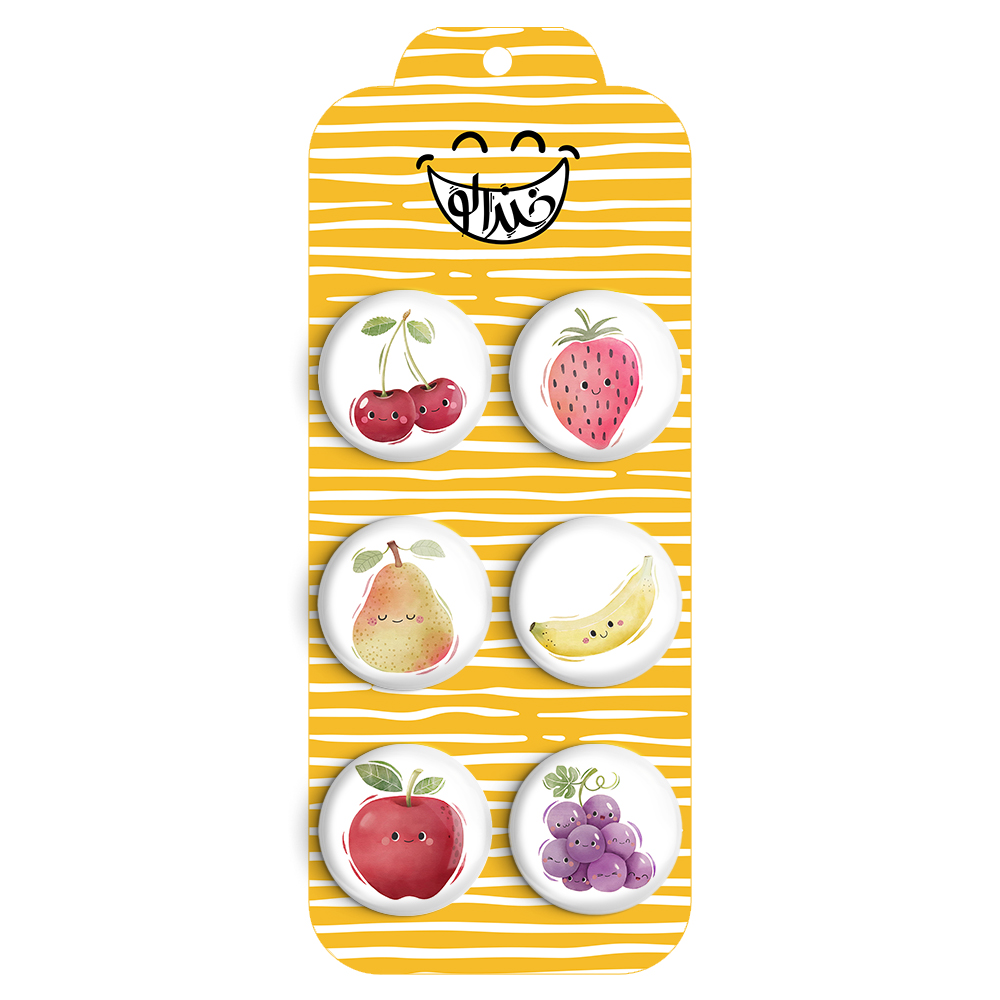 مجموعه 6 عددی پیکسل خندالو طرح یخچالی میوه با روکش سلفون حرارتی براق ضدخش و قطعه پشتی رنگی تولید شده است. قطعات پشتی از میان 6 رنگ سفید، مشکی، صورتی، زرد، آبی و قرمز که با توجه به نوع و رنگبندی طرح روی پیکسل انتخاب شده اند تولید می شود و در هر بسته بندی مطابق عکس محصول می باشد. قطعات پلاستیکی پشت پیکسل با سوزن یک تکه ثابت و بدون لغزش و جا به جایی، ایستایی بسیار بهتری نسبت به پشتی فلزی پیکسل دارند که این مهم در تولید این محصول نیز رعایت شده است. چاپ پیکسل نیز با دستگاه های استاندارد و با بهترین سطح کیفی صورت گرفته و طرح با شفافیتی مثال زدنی و با سلفونی بدون شکست نور بر روی پیکسل نقش بسته است. همچنین بسته بندی جذاب و مینیمال پیکسل ها، آنها را مناسب هدیه کرده است..