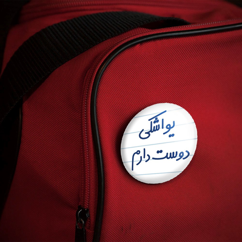 پیکسل 44 میلی متری یواشکی دوست دارم خندالو با روکش سلفون حرارتی مات مخملی ضدخش و قطعه پشتی رنگی تولید شده است. قطعات پلاستیکی پشت پیکسل با سوزن یک تکه ثابت و بدون لغزش و جا به جایی، ایستایی بسیار بهتری نسبت به پشتی فلزی پیکسل دارند که این مهم در تولید این محصول نیز رعایت شده است. چاپ پیکسل یواشکی دوست دارم نیز با دستگاه های استاندارد و با بهترین سطح کیفی صورت گرفته و طرح با شفافیتی مثال زدنی و با سلفونی بدون شکست نور بر روی پیکسل نقش بسته است. همچنین بسته بندی جذاب و مینیمال پیکسل یواشکی دوست دارم ، آنها را مناسب هدیه کرده است.