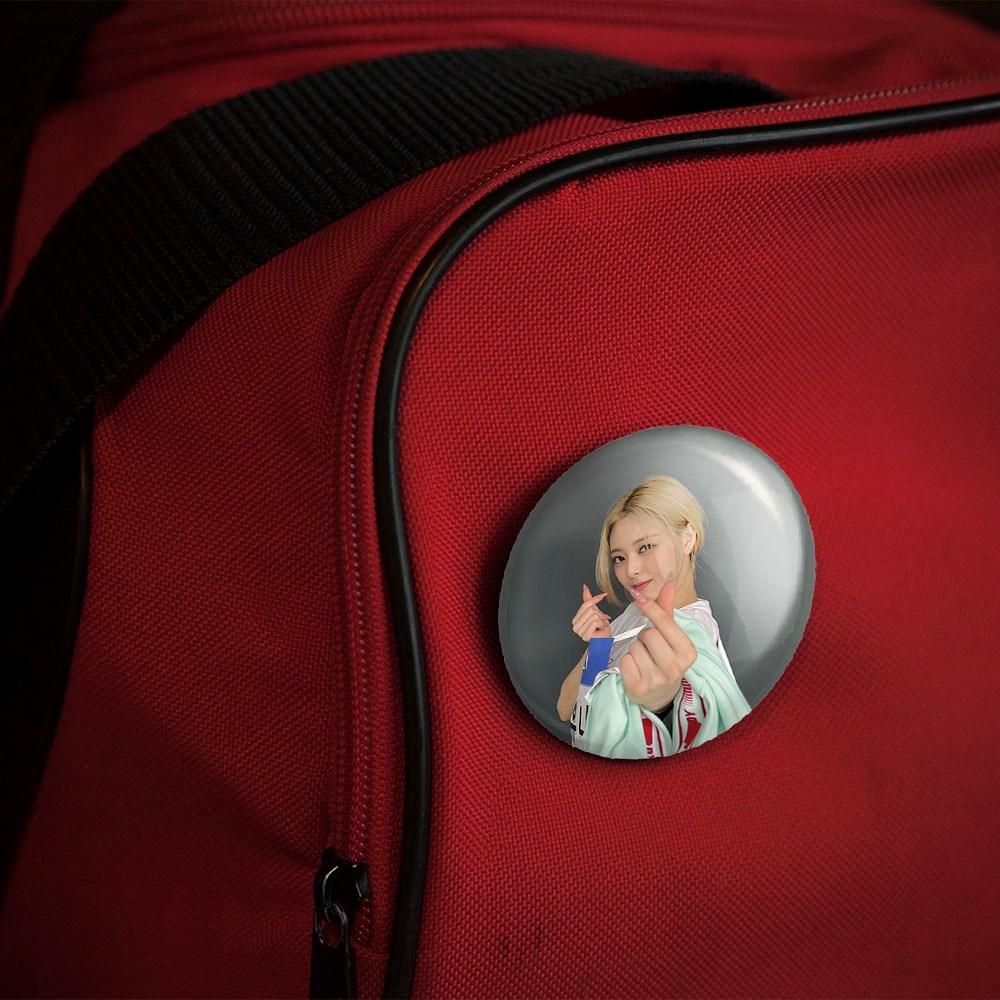 پیکسل 44 میلی متری یونا گروه ایتزی ITZY خندالو با روکش سلفون حرارتی مات مخملی ضدخش و قطعه پشتی رنگی تولید شده است.پلاستیکی پشت پیکسل با سوزن یک تکه ثابت و بدون لغزش و جا به جایی، ایستایی بسیار بهتری نسبت به پشتی فلزی پیکسل دارند که این مهم در تولید این محصول نیز رعایت شده است.