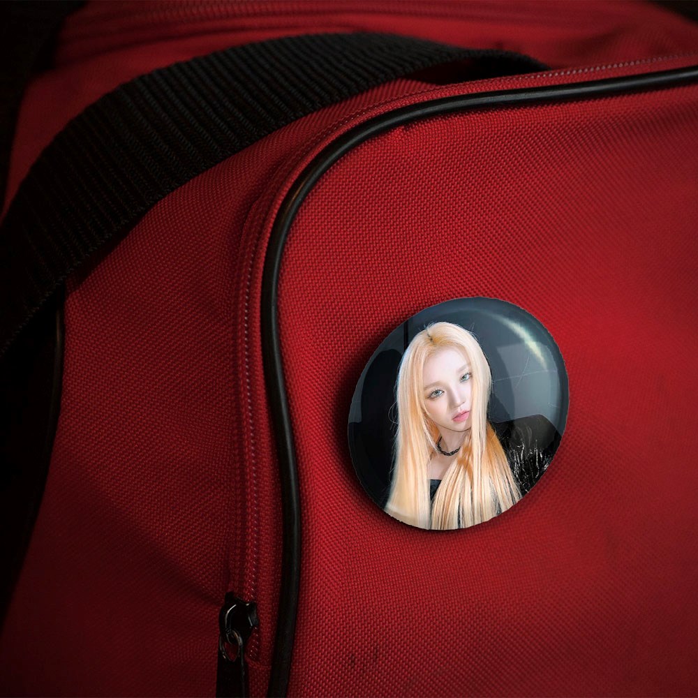 پیکسل 44 میلی متری یوکی گروه جی آیدل GIdle خندالو با روکش سلفون حرارتی مات مخملی ضدخش و قطعه پشتی رنگی تولید شده است.پلاستیکی پشت پیکسل با سوزن یک تکه ثابت و بدون لغزش و جا به جایی، ایستایی بسیار بهتری نسبت به پشتی فلزی پیکسل دارند که این مهم در تولید این محصول نیز رعایت شده است.