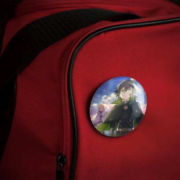 پیکسل 44 میلی متری یویچیرو و میکائیل انیمه اسرافیل پایانی خندالو با روکش سلفون حرارتی مات مخملی ضدخش و قطعه پشتی رنگی تولید شده است.پلاستیکی پشت پیکسل با سوزن یک تکه ثابت و بدون لغزش و جا به جایی، ایستایی بسیار بهتری نسبت به پشتی فلزی پیکسل دارند که این مهم در تولید این محصول نیز رعایت شده است.
