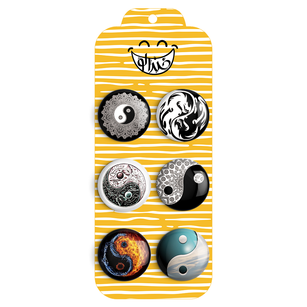 مجموعه 6 عددی پیکسل خندالو طرح یین و یانگ با روکش سلفون حرارتی براق ضدخش و قطعه پشتی رنگی تولید شده است. قطعات پشتی از میان 6 رنگ سفید، مشکی، صورتی، زرد، آبی و قرمز که با توجه به نوع و رنگبندی طرح روی پیکسل انتخاب شده اند تولید می شود و در هر بسته بندی مطابق عکس محصول می باشد.