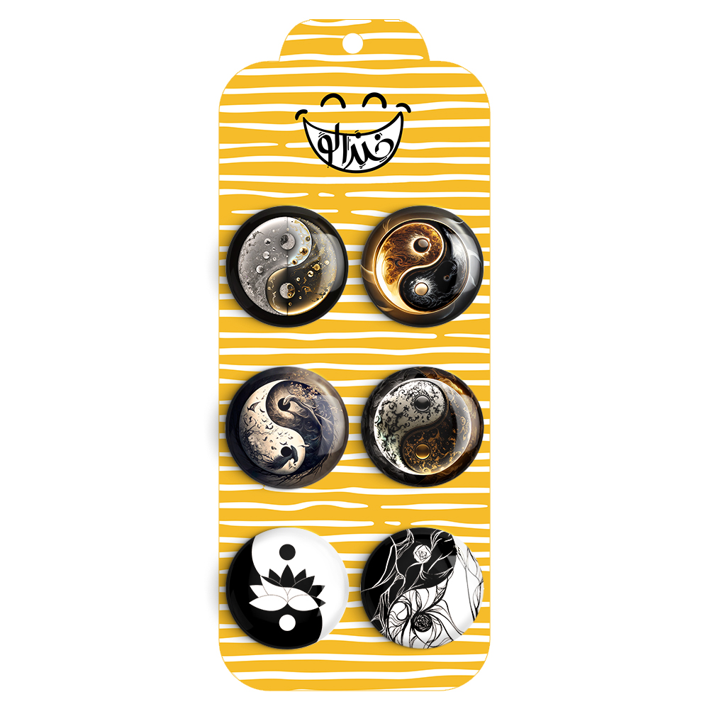 مجموعه 6 عددی پیکسل خندالو طرح یین و یانگ با روکش سلفون حرارتی براق ضدخش و قطعه پشتی رنگی تولید شده است. قطعات پشتی از میان 6 رنگ سفید، مشکی، صورتی، زرد، آبی و قرمز که با توجه به نوع و رنگبندی طرح روی پیکسل انتخاب شده اند تولید می شود و در هر بسته بندی مطابق عکس محصول می باشد.