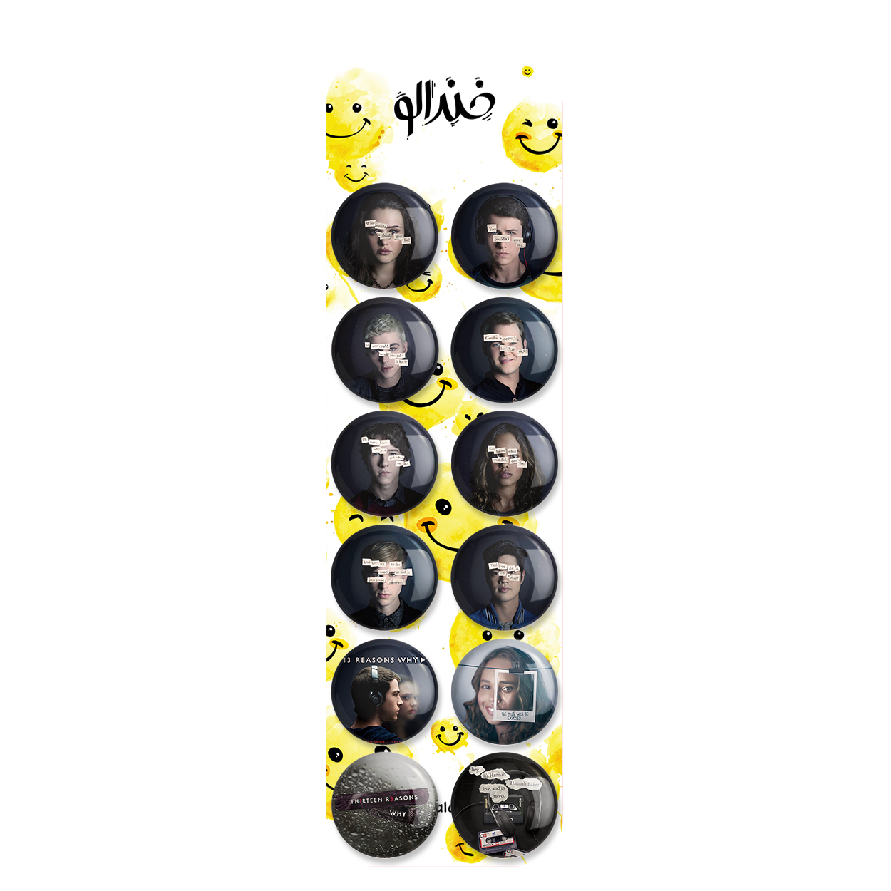 پک 12 عددی پیکسل خندالو طرح (13 reasons why) 13دلیل برای اینکه با روکش سلفون حرارتی براق ضدخش و قطعه پشتی رنگی تولید شده است. قطعات پشتی از میان 6 رنگ سفید، مشکی، صورتی، زرد، آبی و قرمز که با توجه به نوع و رنگبندی طرح روی پیکسل انتخاب شده اند تولید می شود و در هر بسته بندی مطابق عکس محصول می باشد. قطعات پلاستیکی پشت پیکسل با سوزن یک تکه ثابت و بدون لغزش و جا به جایی، ایستایی بسیار بهتری نسبت به پشتی فلزی پیکسل دارند که این مهم در تولید این محصول نیز رعایت شده است.
