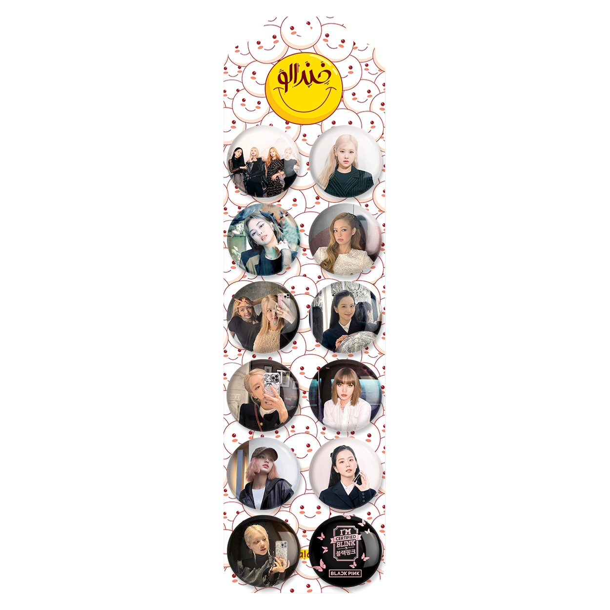 پک 12 عددی پیکسل خندالو طرح Black Pink بلک پینک با روکش سلفون حرارتی براق ضدخش و قطعه پشتی رنگی تولید شده است. قطعات پشتی از میان 6 رنگ سفید، مشکی، صورتی، زرد، آبی و قرمز که با توجه به نوع و رنگبندی طرح روی پیکسل انتخاب شده اند تولید می شود و در هر بسته بندی مطابق عکس محصول می باشد. قطعات پلاستیکی پشت پیکسل با سوزن یک تکه ثابت و بدون لغزش و جا به جایی، ایستایی بسیار بهتری نسبت به پشتی فلزی پیکسل دارند که این مهم در تولید این محصول نیز رعایت شده است.