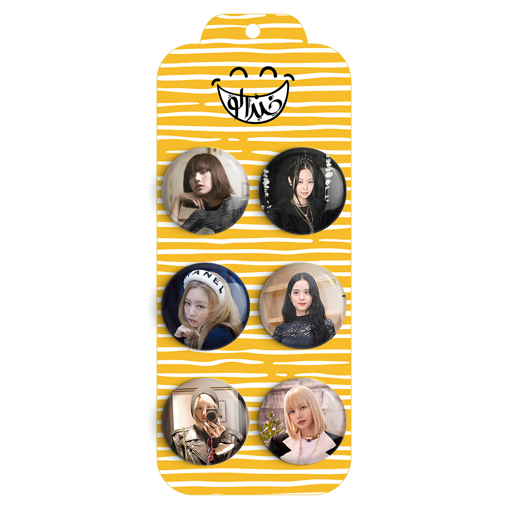 مجموعه 6 عددی پیکسل خندالو طرح Black Pink گروه با روکش سلفون حرارتی براق ضدخش و قطعه پشتی رنگی تولید شده است. قطعات پشتی از میان 6 رنگ سفید، مشکی، صورتی، زرد، آبی و قرمز که با توجه به نوع و رنگبندی طرح روی پیکسل انتخاب شده اند تولید می شود و در هر بسته بندی مطابق عکس محصول می باشد.