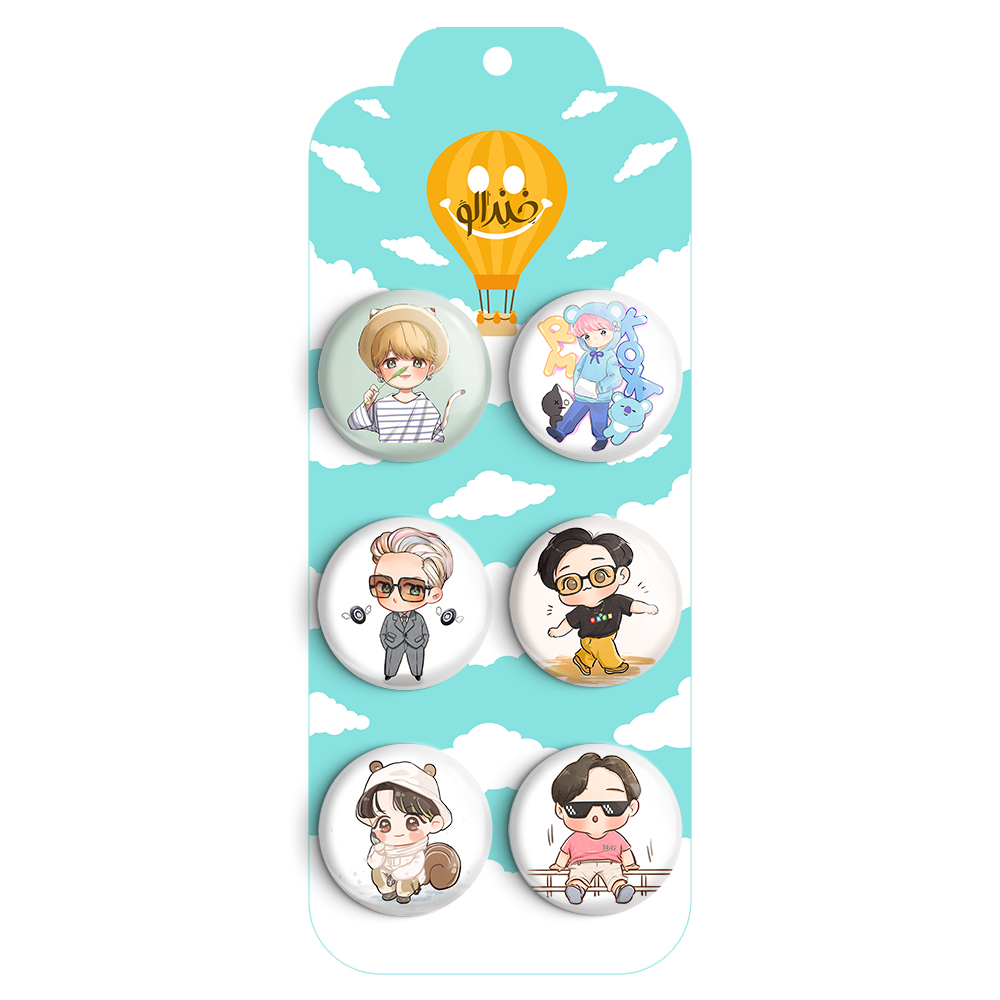 مجموعه 6 عددی پیکسل خندالو طرح BT21 با روکش سلفون حرارتی براق ضدخش و قطعه پشتی رنگی تولید شده است. قطعات پشتی از میان 6 رنگ سفید، مشکی، صورتی، زرد، آبی و قرمز که با توجه به نوع و رنگبندی طرح روی پیکسل انتخاب شده اند تولید می شود و در هر بسته بندی مطابق عکس محصول می باشد.