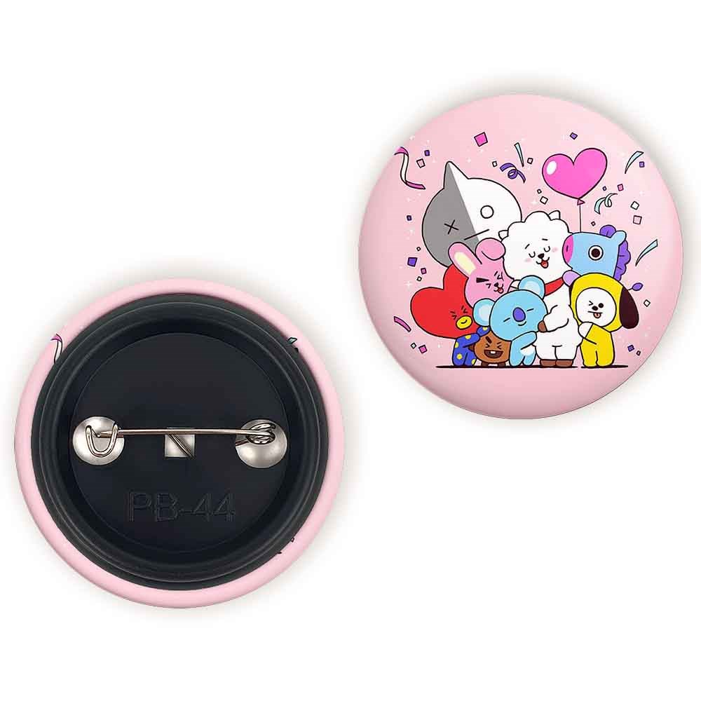 پیکسل 44 میلی متری BT21 خندالو با روکش سلفون حرارتی مات مخملی ضدخش و قطعه پشتی رنگی تولید شده است.پلاستیکی پشت پیکسل با سوزن یک تکه ثابت و بدون لغزش و جا به جایی، ایستایی بسیار بهتری نسبت به پشتی فلزی پیکسل دارند که این مهم در تولید این محصول نیز رعایت شده است.